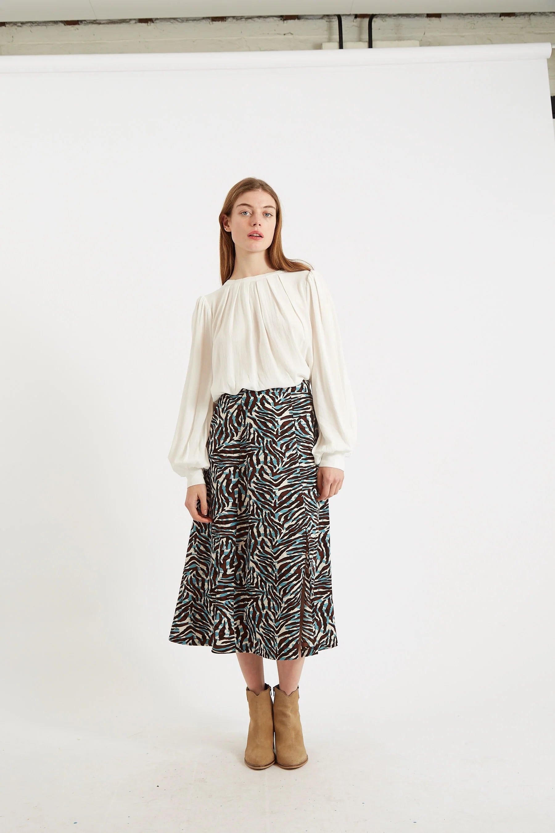 Kiyo Roar Print Midi Skirt
