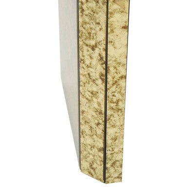 Its antique mirrored glass surfaces catch the light to create a subtle glow, while the warm metallic accents add contemporary polish that pairs effortlessly with both classic and modern decor.