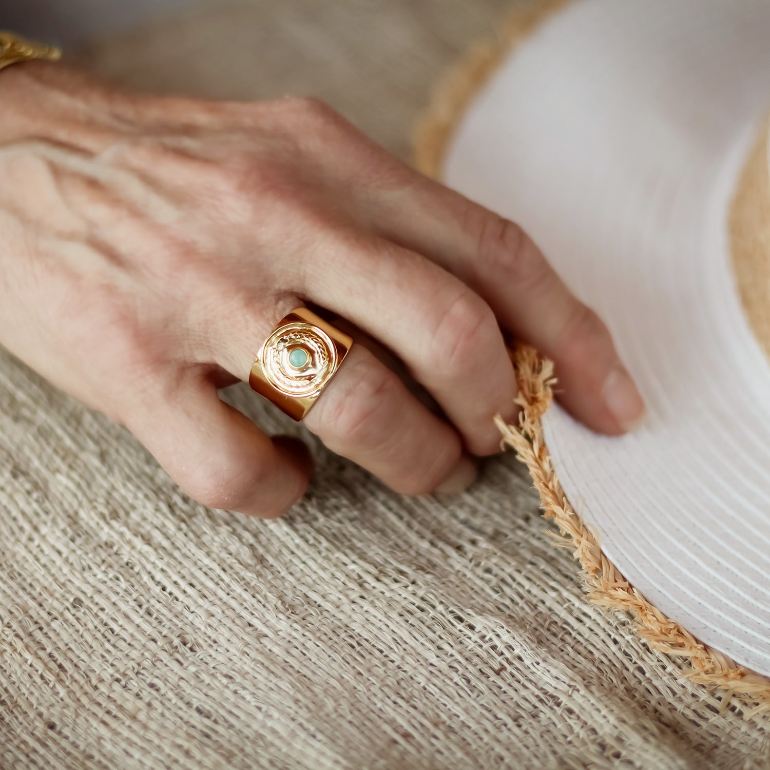 Kotinos Olive Wreath Coin Ring: Amazonite