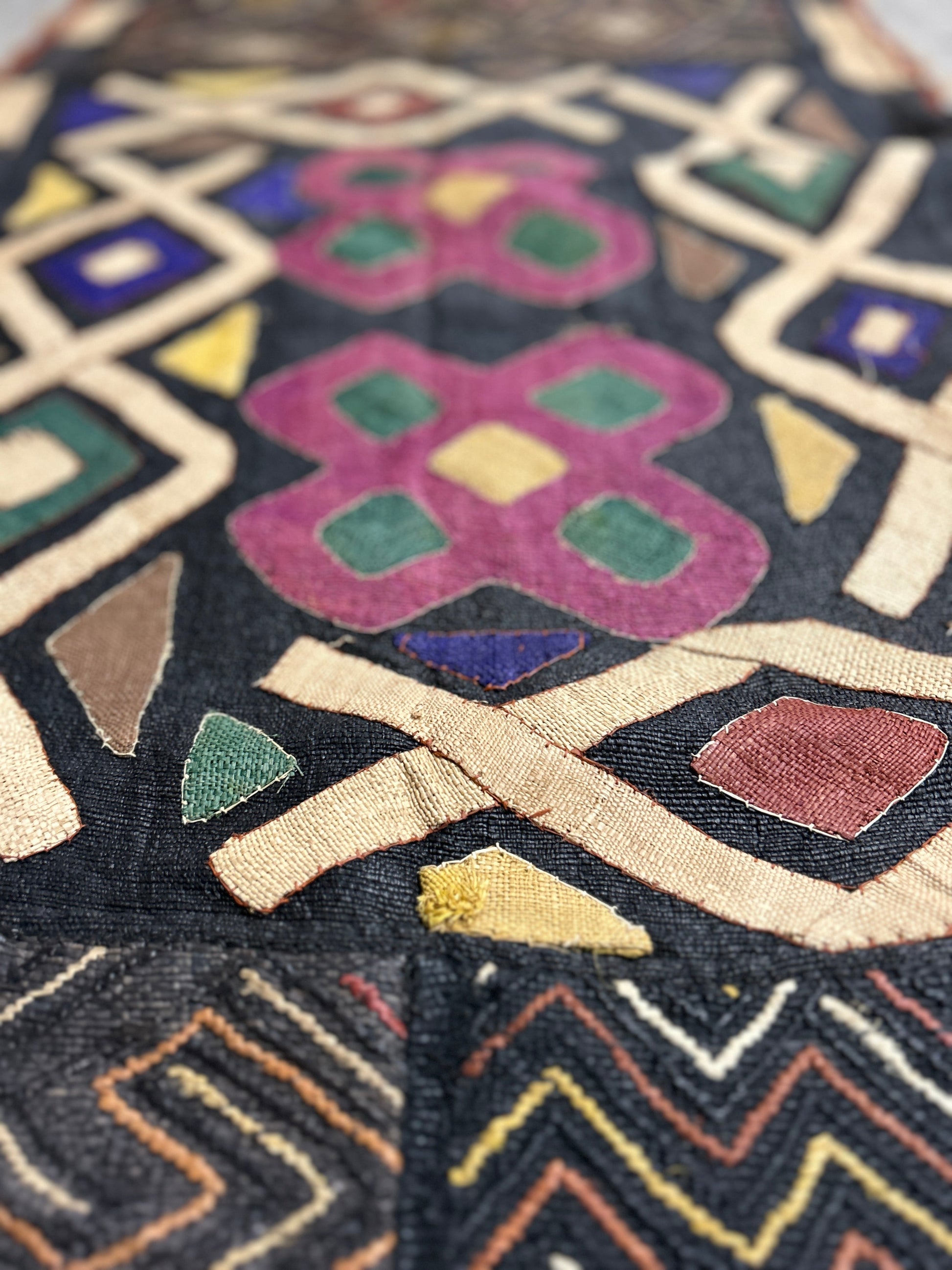 It can take several days to complete a single Kuba cloth, which is about the size of a placemat. Larger prestige pieces, made by joining numerous smaller ones, were traditionally used to demonstrate the power and wealth of Kuba kings.
