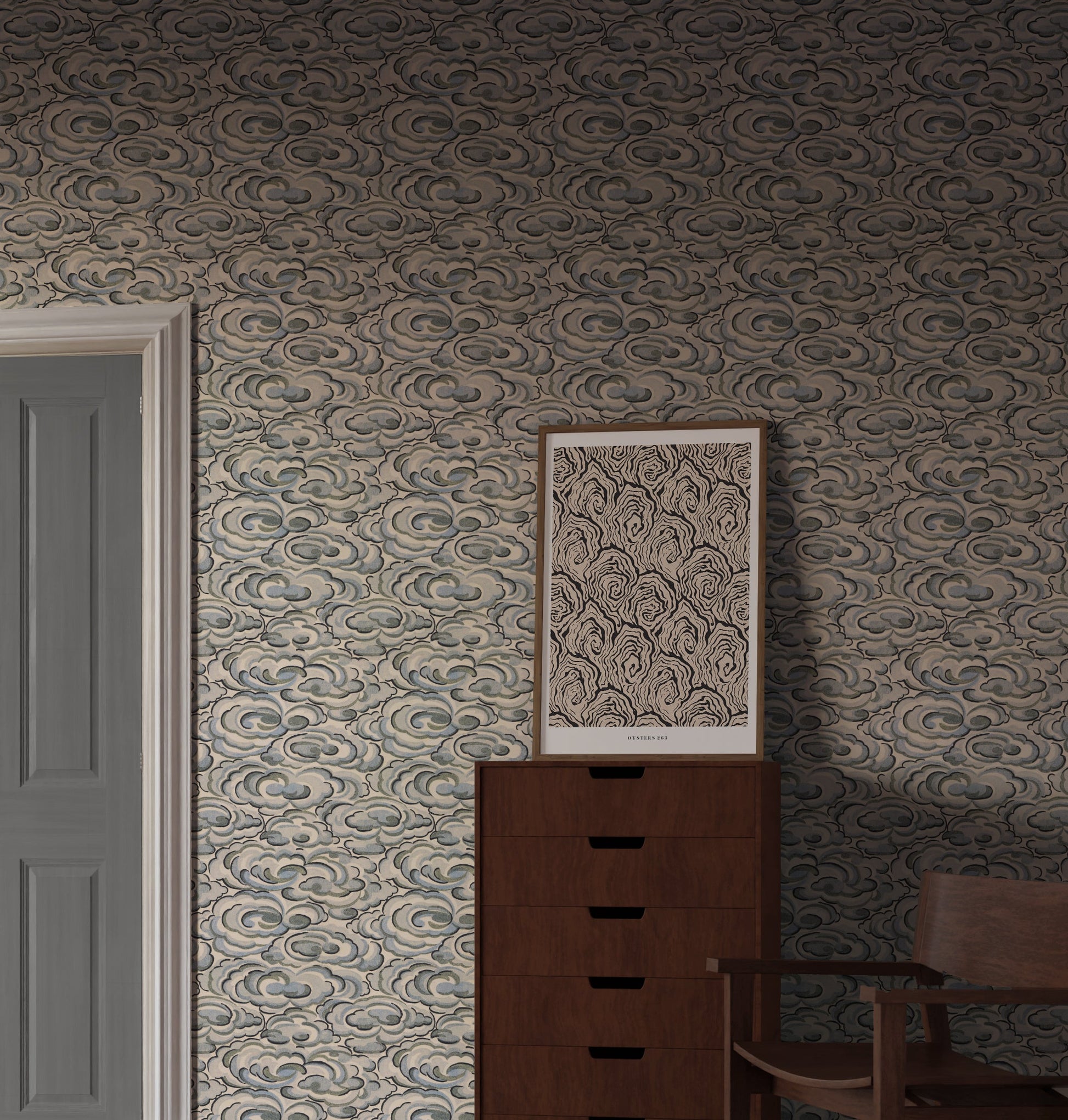 Embrace the clouds & reach for dreams ~ This ethereal wallpaper is inspired by Japanese art and kimono textiles, the original pattern was created for fabric textiles Circa 1910-1930. Cloud motifs classically represented hope & dreams, impermanence and proximity to the Gods. The soft mottled texture, creates calm & dreamy backdrop.