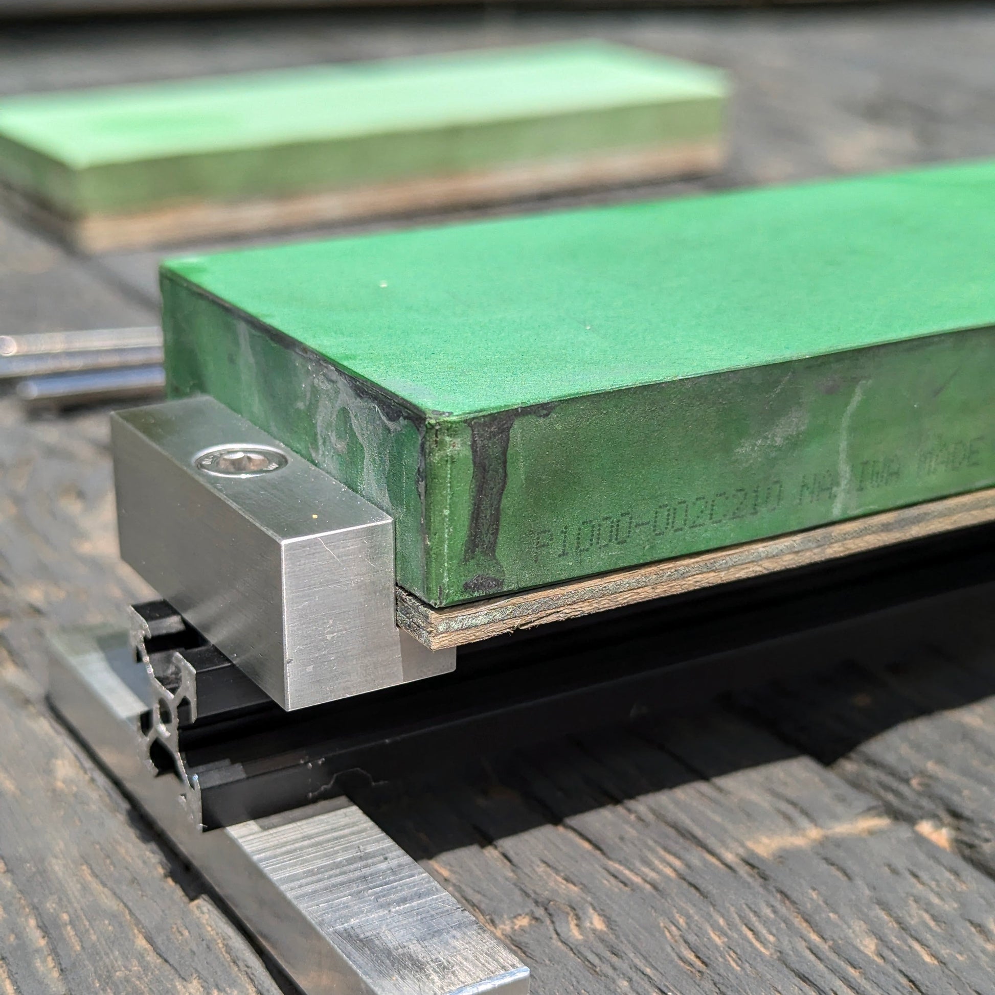 - Set your first stone in the holder, adjust and tighten the supports if needed. If using multiple stones it helps to mount them on boards so they are all the same size and thickness.