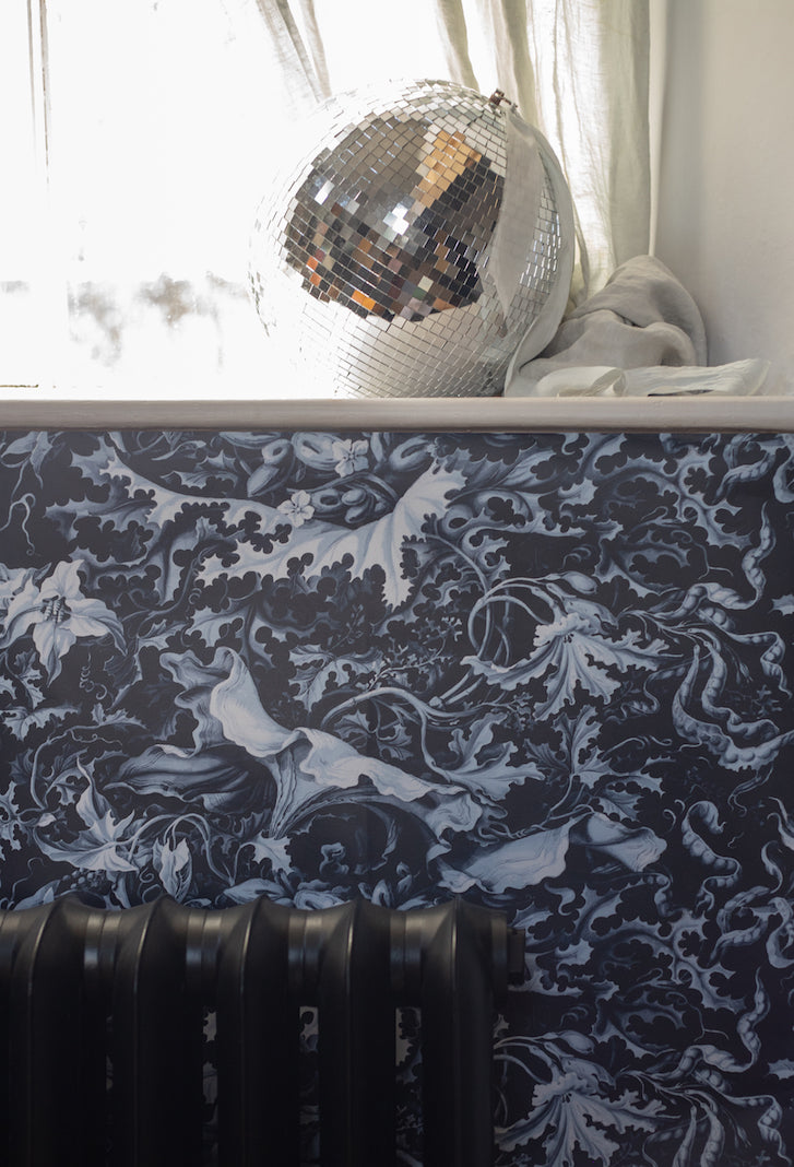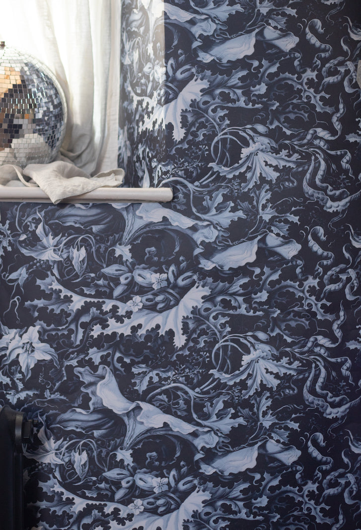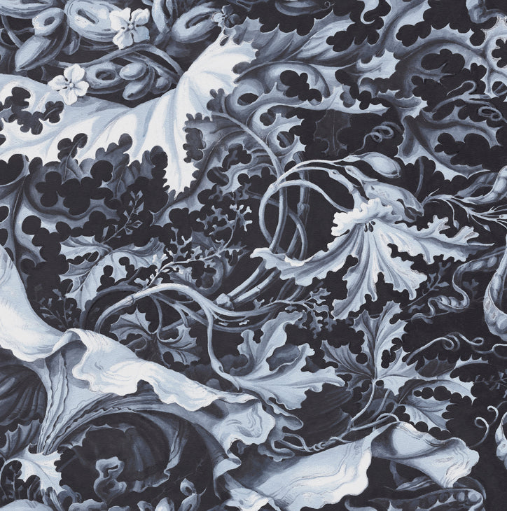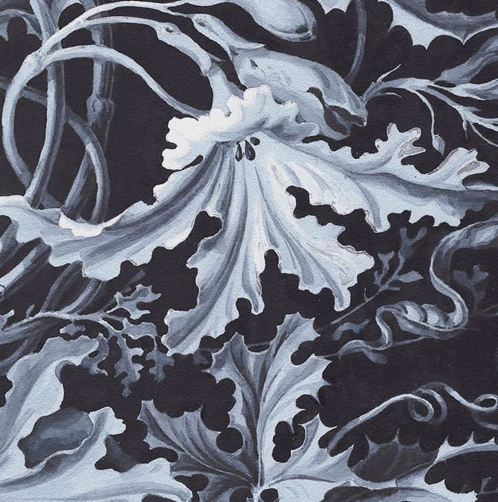 Get lost in the enchanting foliage and vines of this labyrinthine wallpaper, where a mesmerising maze in shades of ink evoke the mysterious ambiance of twilight.