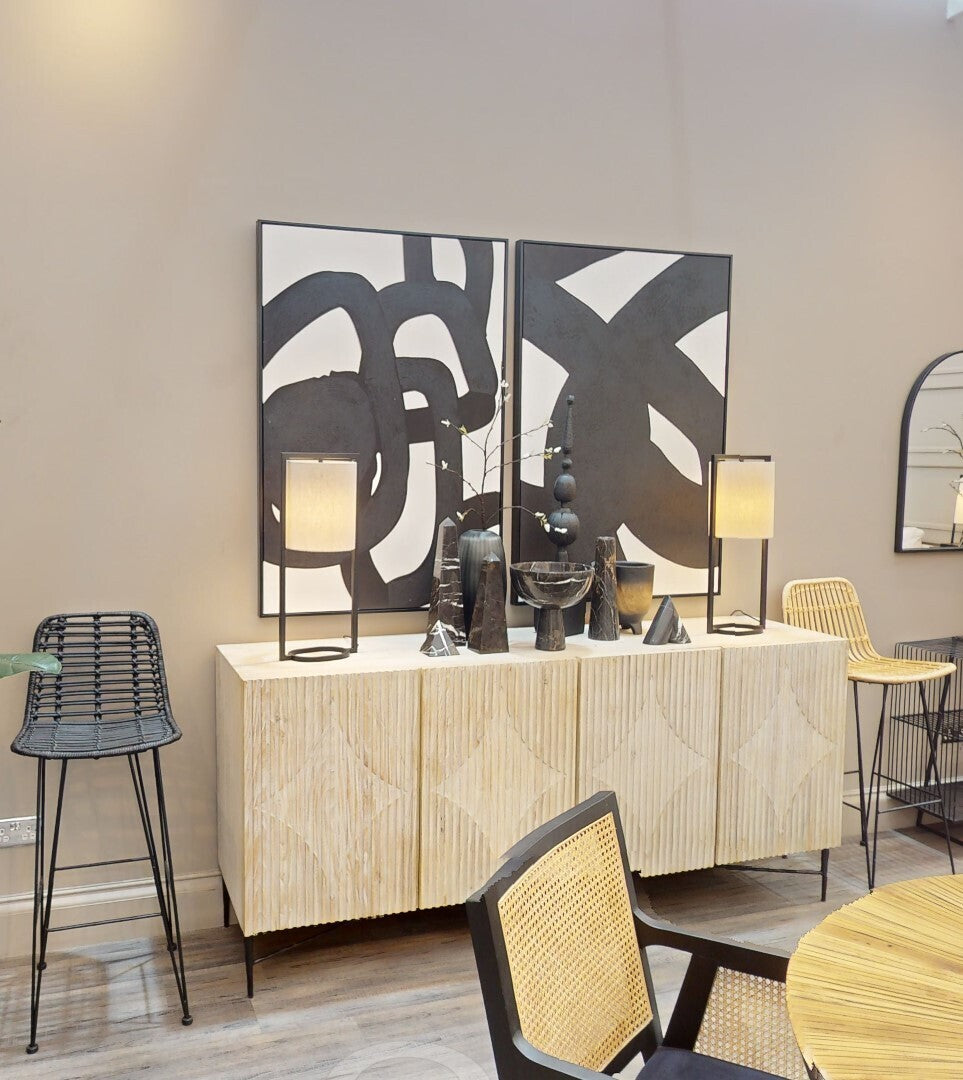 The result is a calm, balanced look that supports conversation, reading, and focused work.