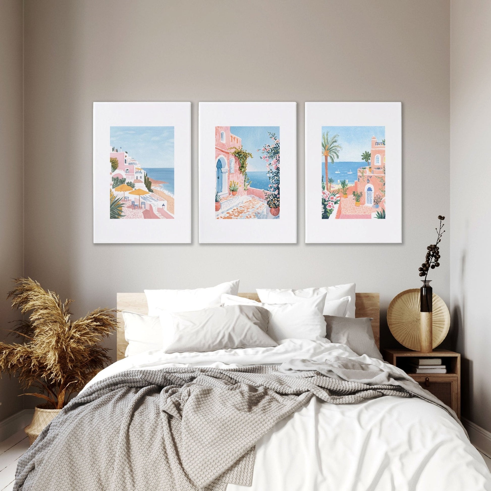 Enhance your space with the unique charm these prints offer. The set of 3 Beach Decor Wall Art Prints harmonises perfectly, creating a cohesive look that elevates your bedroom's atmosphere. Furthermore, the pastel art colour palette enhances any decor style, blending seamlessly into both modern and traditional spaces. Moreover, this artwork transforms your bedroom into a personal sanctuary where relaxation and peace await.