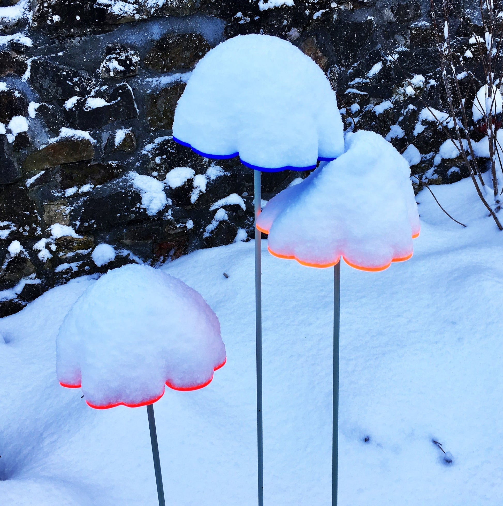 SunCatcher transform short wave spectral light we cannot see into long wave visible light. Accordingly, they are at their brightest, when there is less visible light around us. In the early hours as well as in the late hours of the day or when the sun is hiding behind clouds they will gather the light we cannot see and bring it back to us the brightest red, green, yellow orange and blue, just when we miss it most. SunCatcher work all year long and do not need any battery or power supply. Just a little bit of daylight is enough to start them glow.