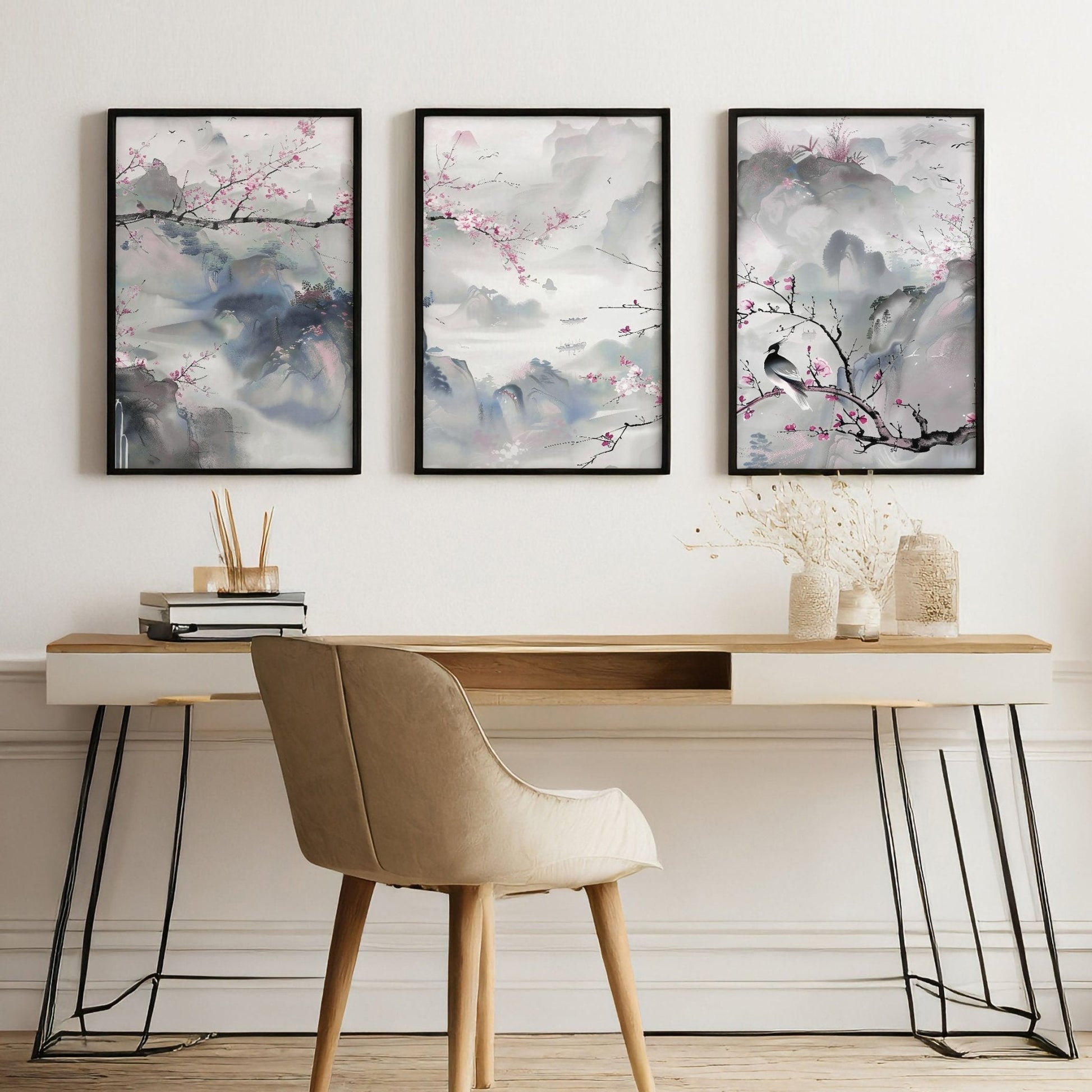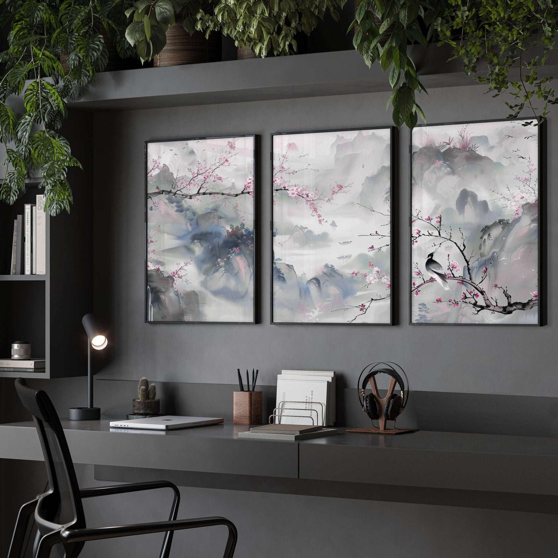 Act now and transform your office with this exclusive Large Modern Wall Art! Experience how a Set of 3 Chinoiserie Wall art Prints can elevate your surroundings with simple yet sophisticated style.