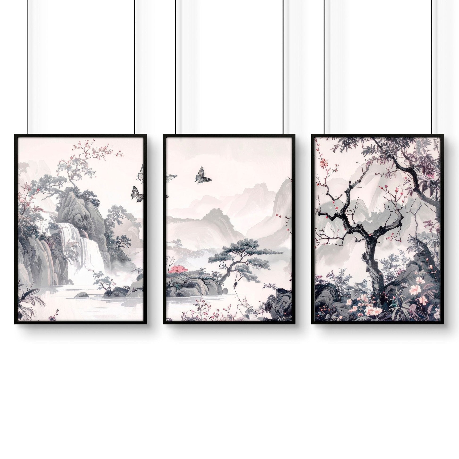 Large Picture Prints | Set of 3 Chinoiserie Wall art Prints
