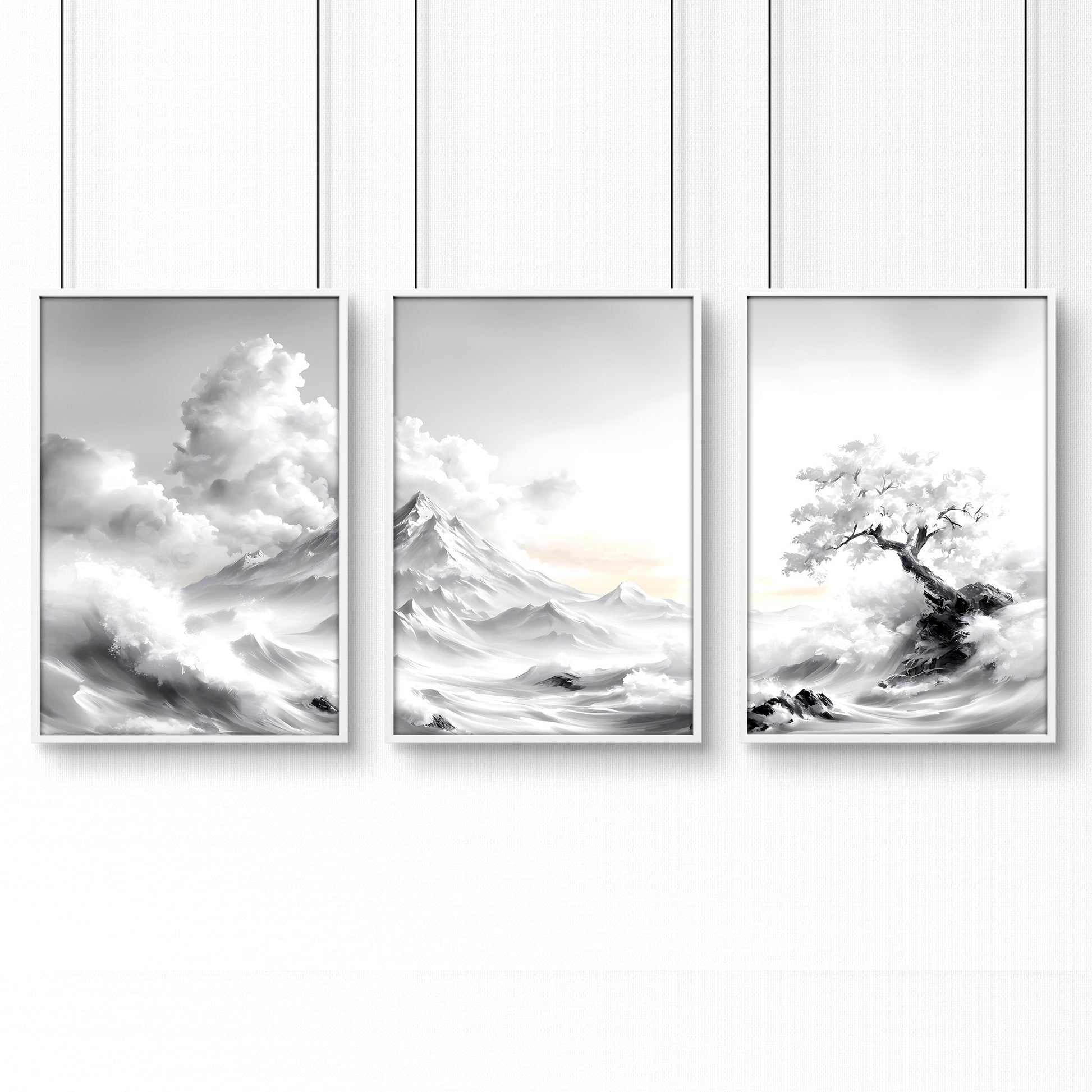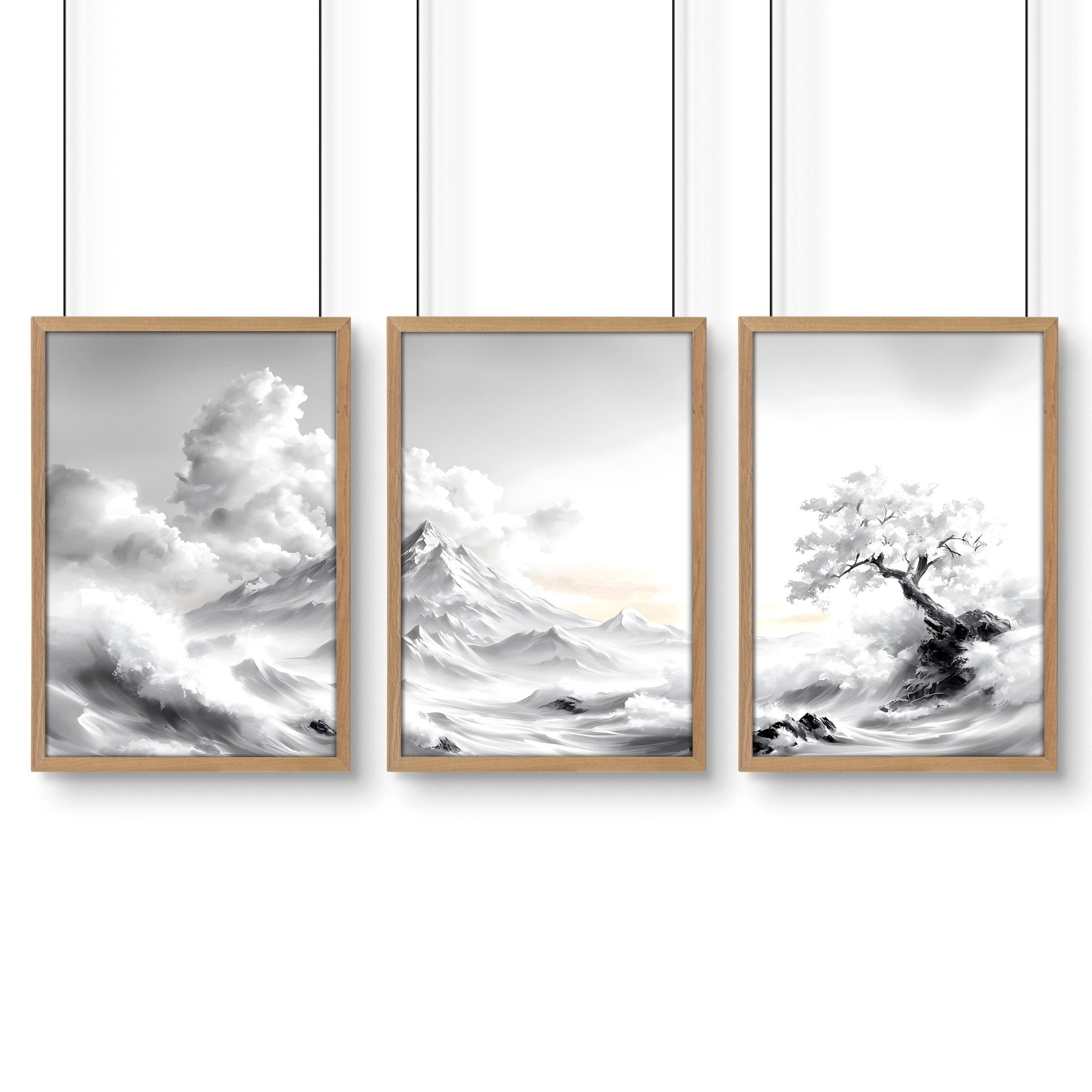 Transform your bedroom into a serene oasis with these Large Wall Art Canvases. This Set of 3 Asian Inspired Wall Art Prints effortlessly combines elegance and tranquillity, drawing you into a world of refined beauty and minimalism. The striking black and white palette provides a stunning contrast that captures attention and complements any Bedroom Wall Art decor. Imagine waking up to the serene silhouettes of these exquisite prints, adding a sophisticated touch to your personal space.