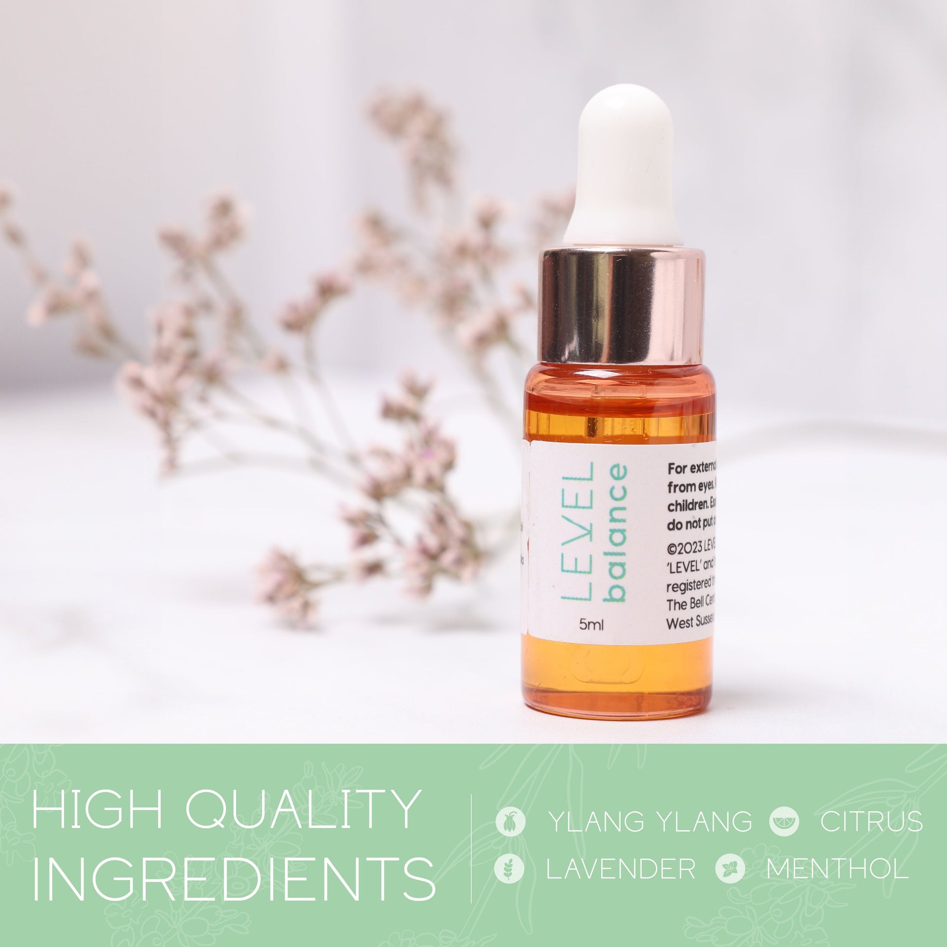 Ingredients: 5ml Oil: Prunus Amygdalus Dulcis (Almond) Oil, Citrus Aurantium Dulcis Peel Oil, Mentah Haplocalyx Oil, Lavandula Angustifolia Oil and Cananga Odorata Flower Oil.