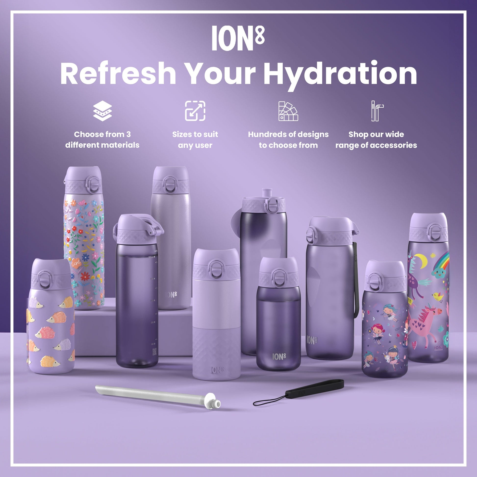 Made from stainless steel. Stainless steel is extremely durable, lasts for years, and is fully recyclable. This refillable and reusable purple water bottle is food safe, odour resistant, easy to hand wash, and keeps drinks fresh and full of flavour.