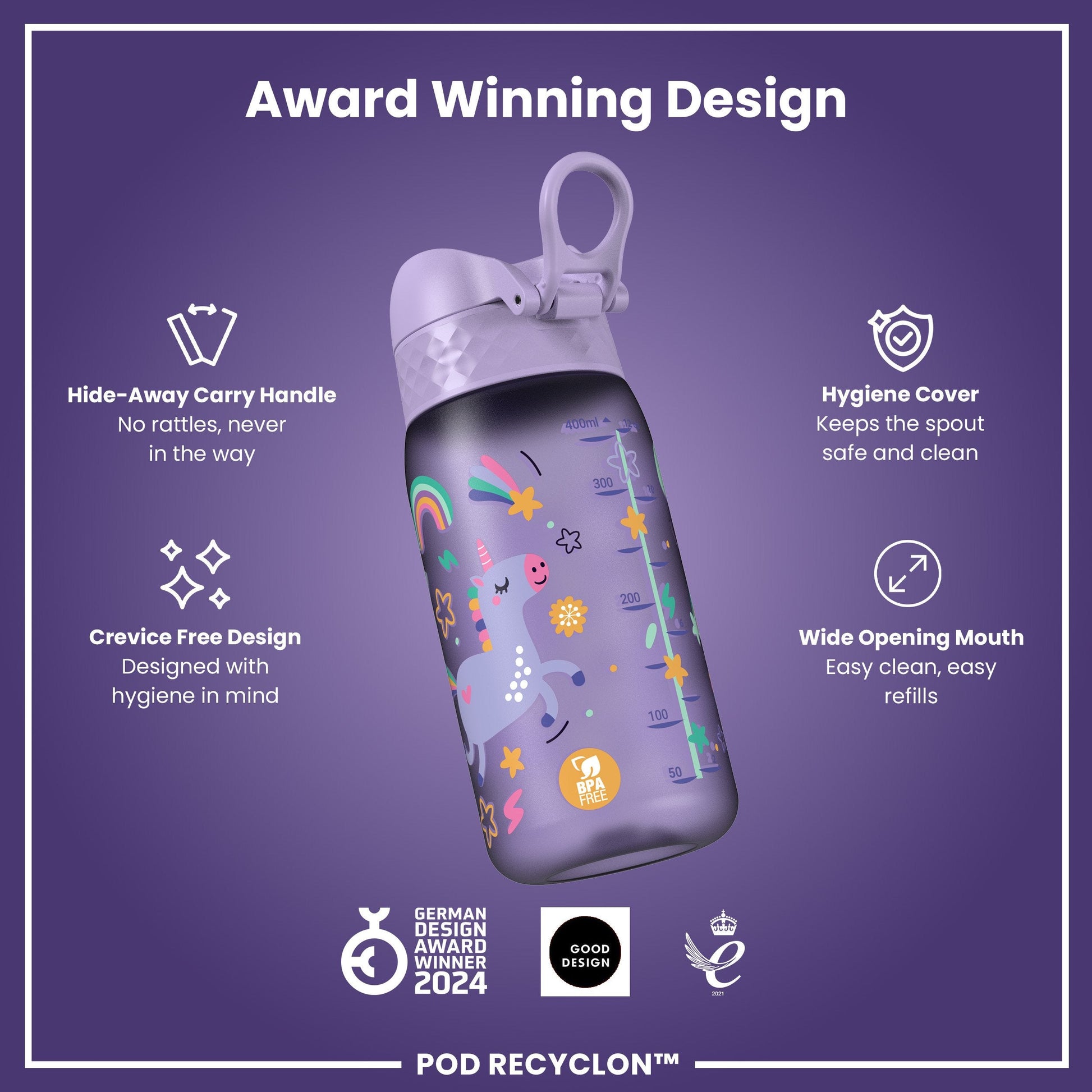 Leak Proof Kids Water Bottle, Recyclon, Purple Unicorns, 350ml (12oz)
