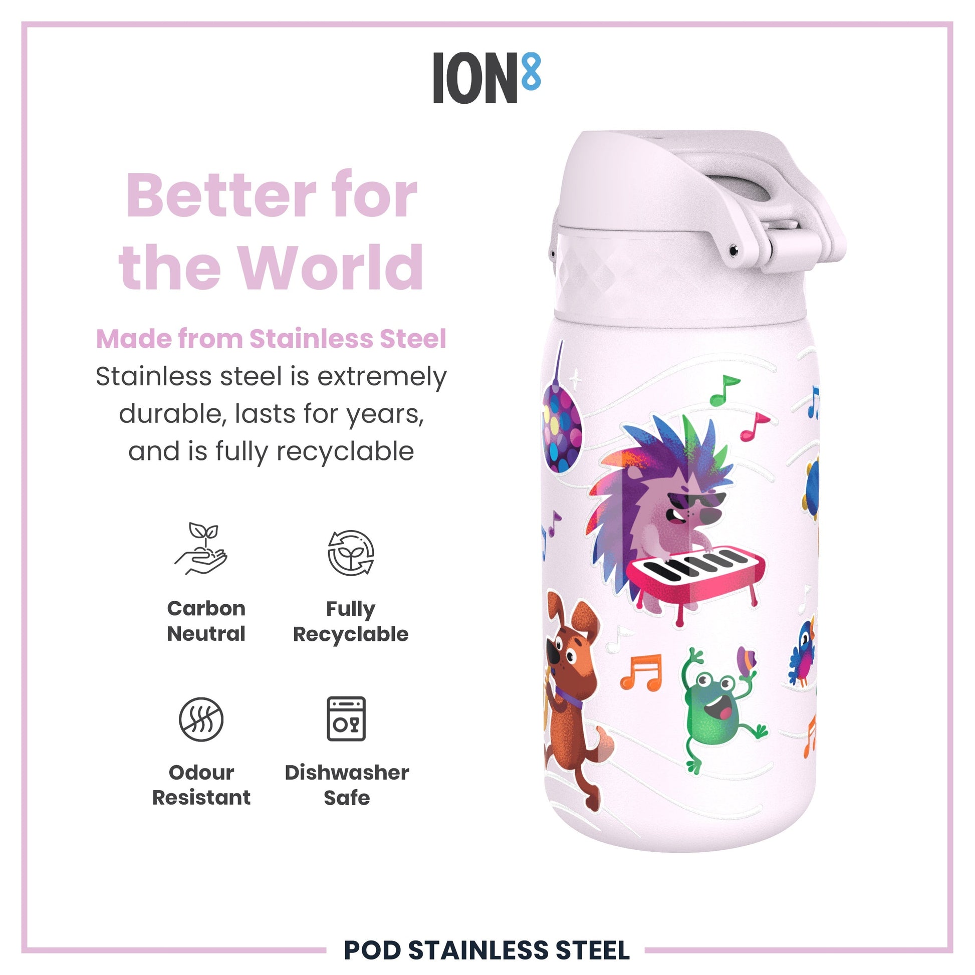 Leak Proof Kids Water Bottle, Stainless Steel, Animal Band, 400ml (13oz)