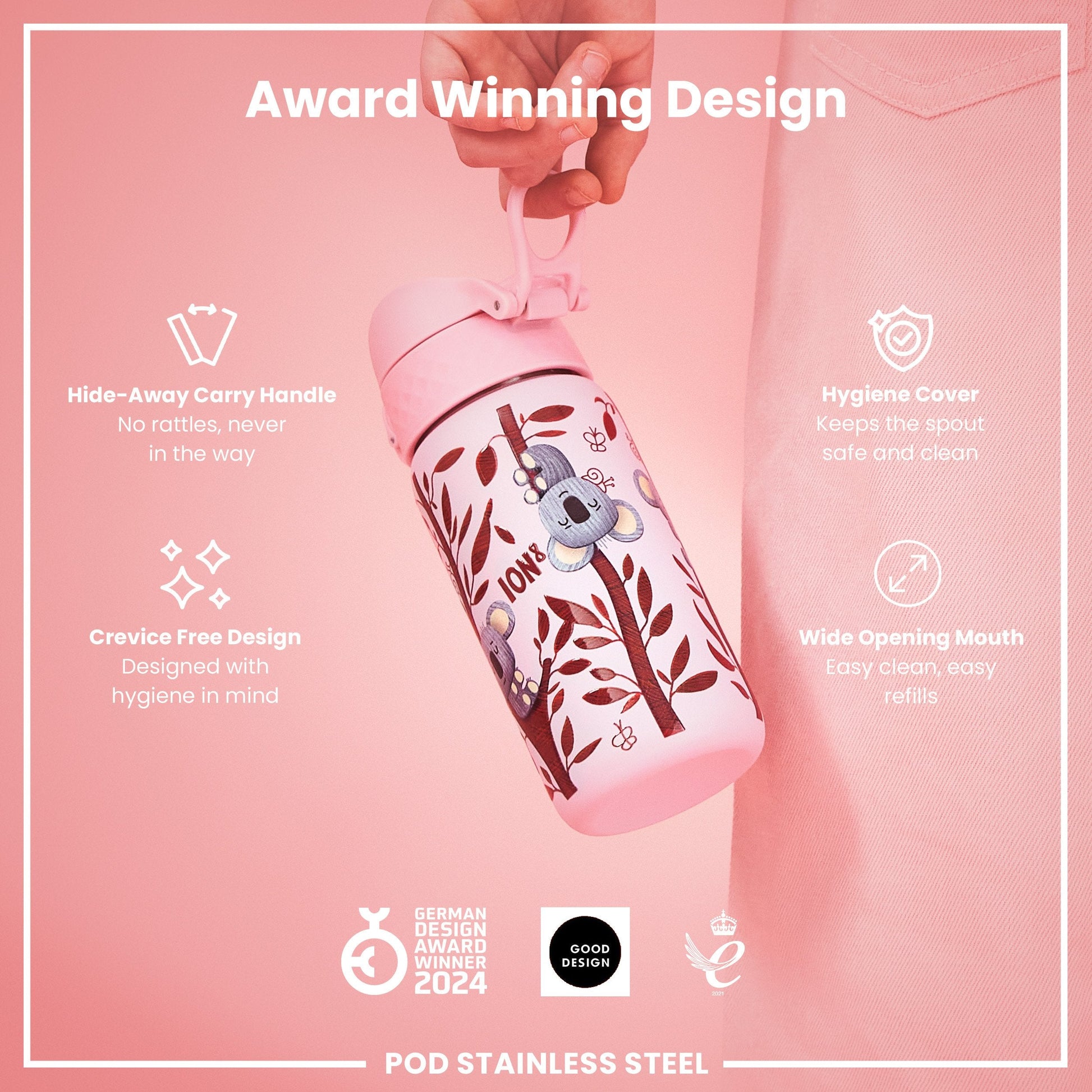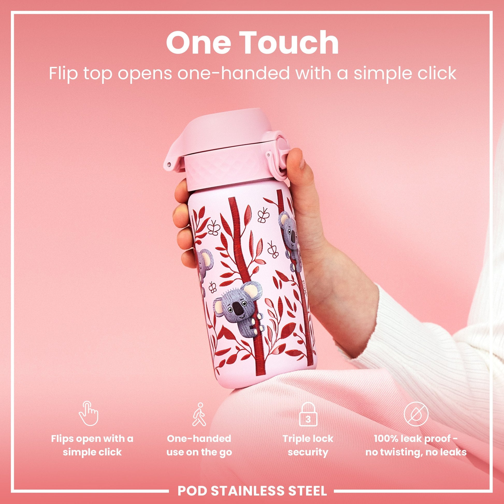 Leak Proof Kids Water Bottle, Stainless Steel, Koalas, 400ml (13oz)