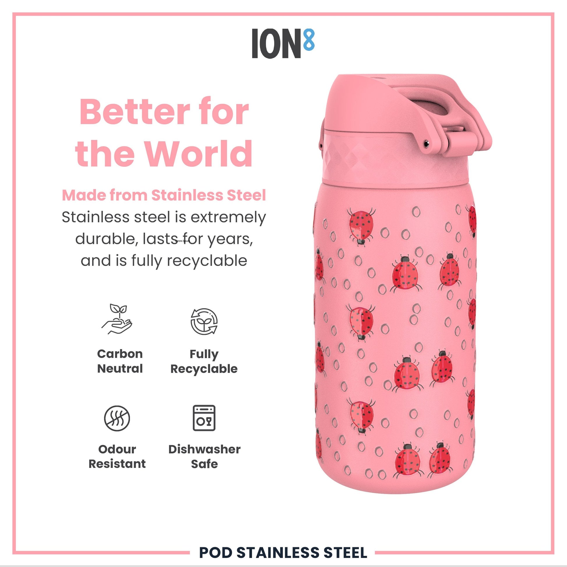 Leak Proof Kids Water Bottle, Stainless Steel, Ladybugs, 400ml (13oz)