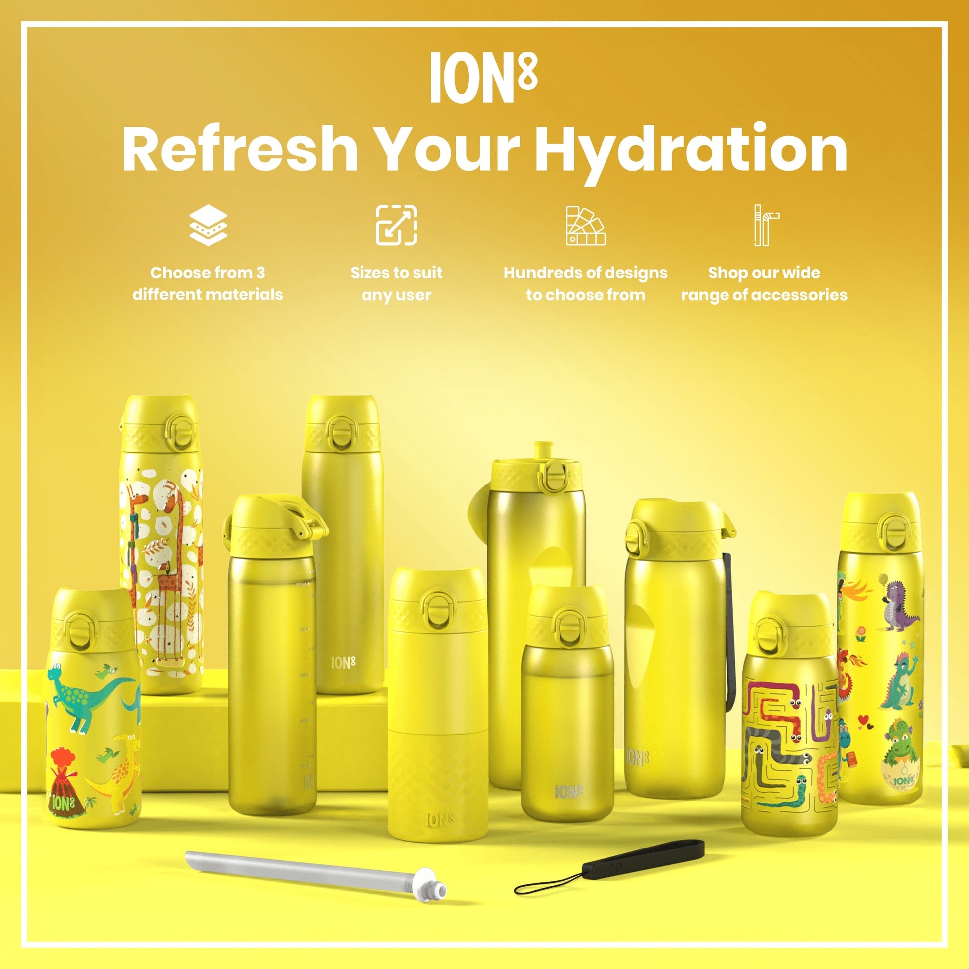 100% leak proof 400ml / 13oz stainless steel yellow water bottle with a smooth flow for spill-free hydration and hygienic full-flip top cover for one handed use on-the-go.