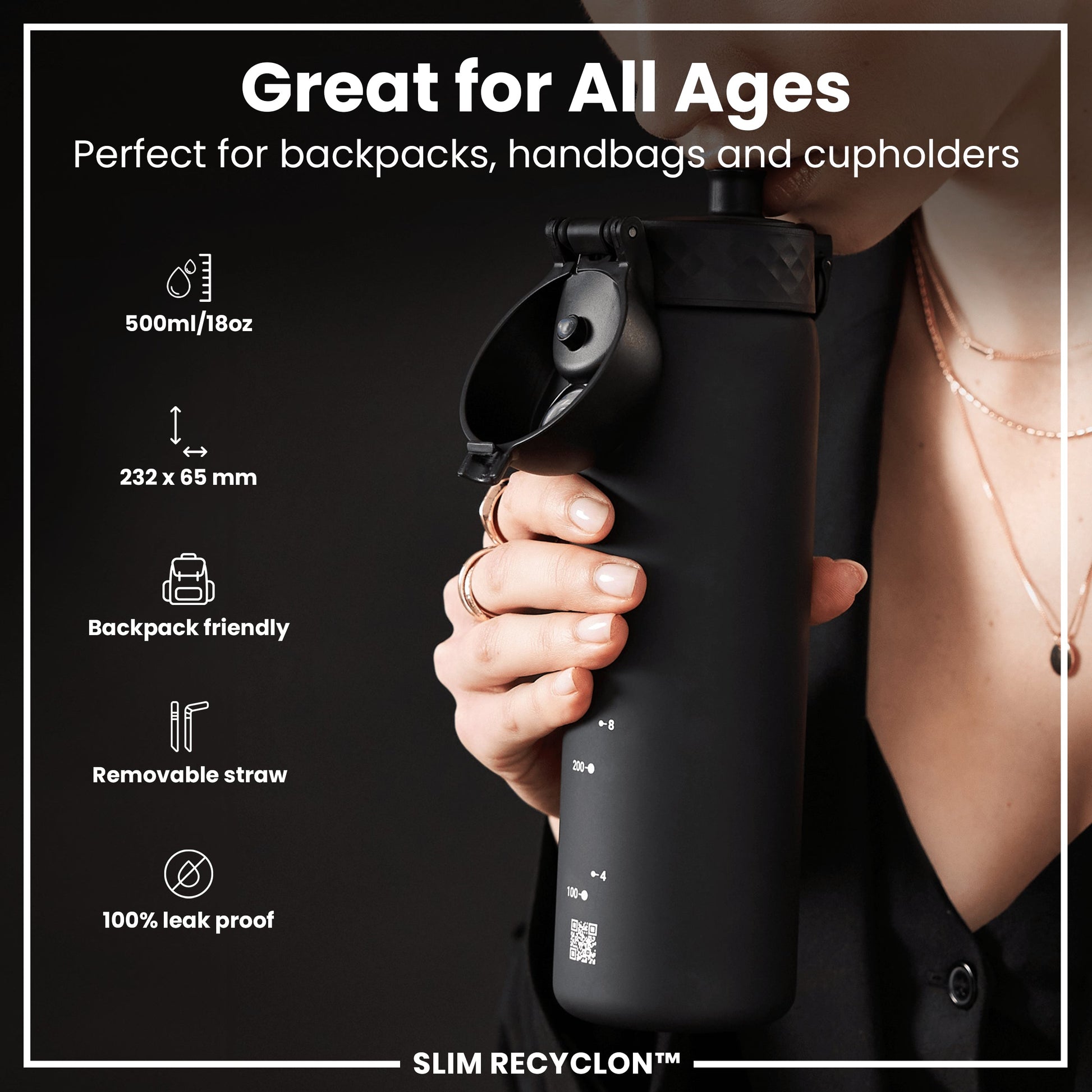 Leak Proof Medium Water Bottle with Straw, Recyclon, Black, 500ml (18oz)