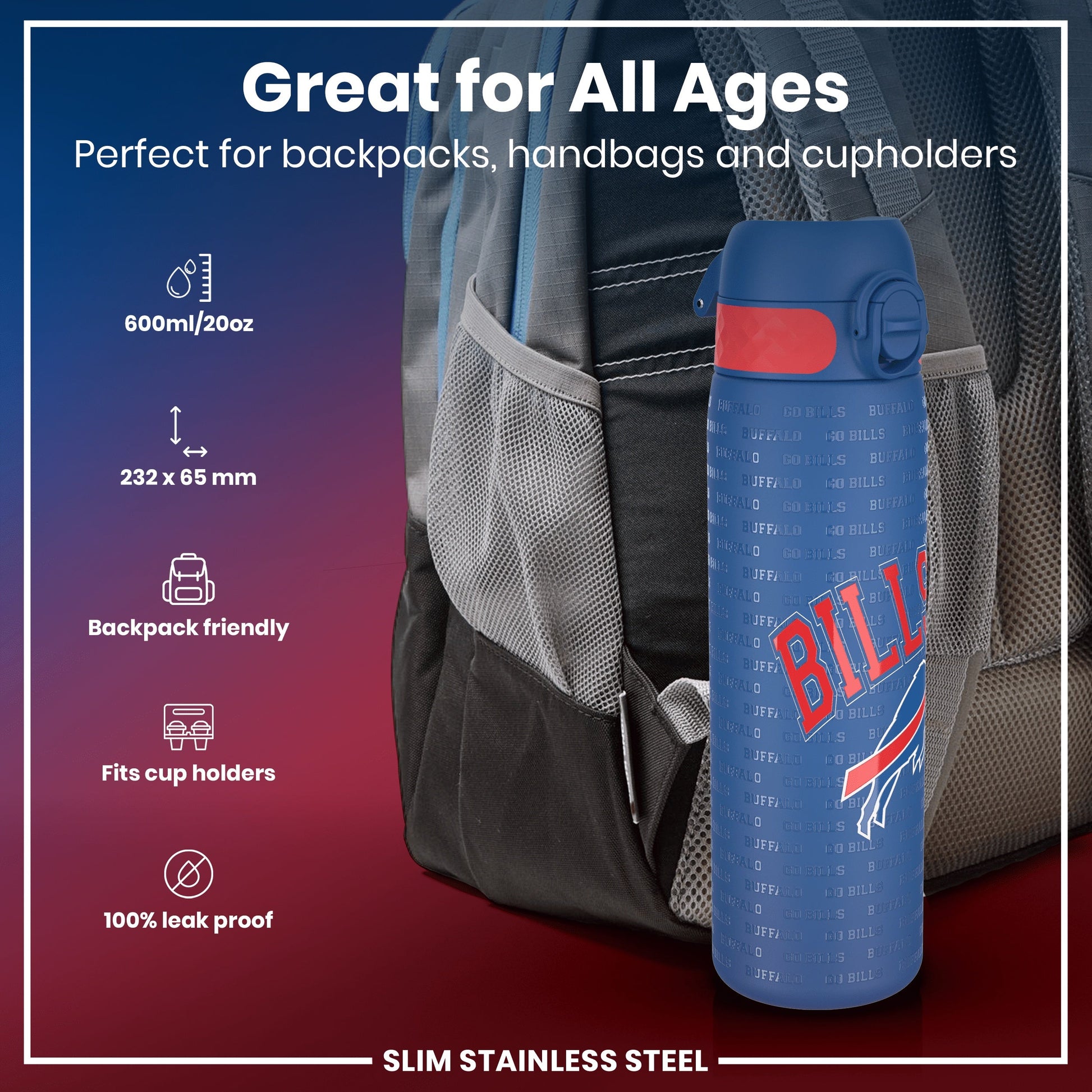 Leak Proof NFL Water Bottle, Stainless Steel, Buffalo Bills, 600ml (20oz)