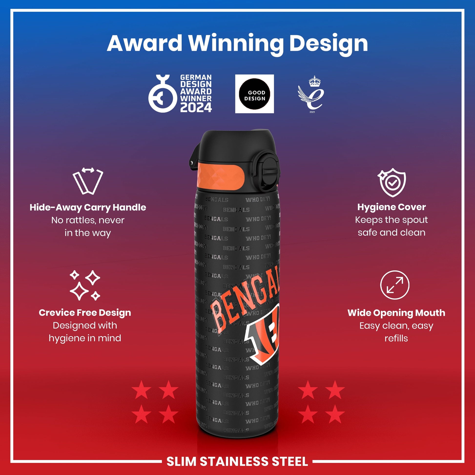 Leak Proof NFL Water Bottle, Stainless Steel, Cincinnati Bengals, 600ml (20oz)