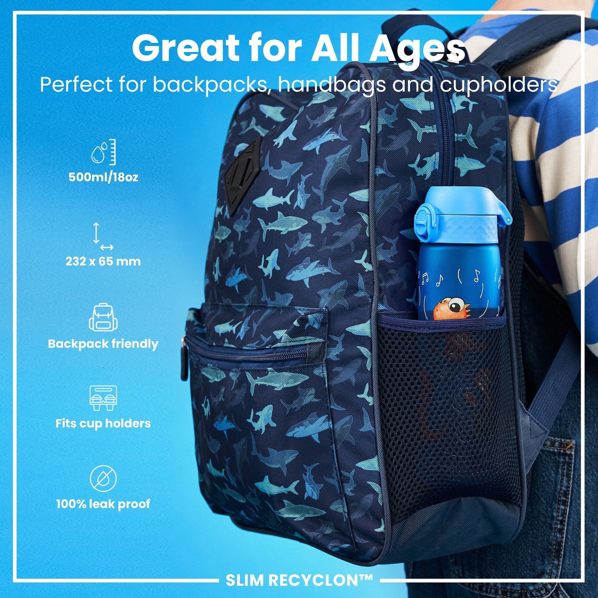 Leak Proof Slim Water Bottle, Recyclon, Dino Band, 500ml (18oz)