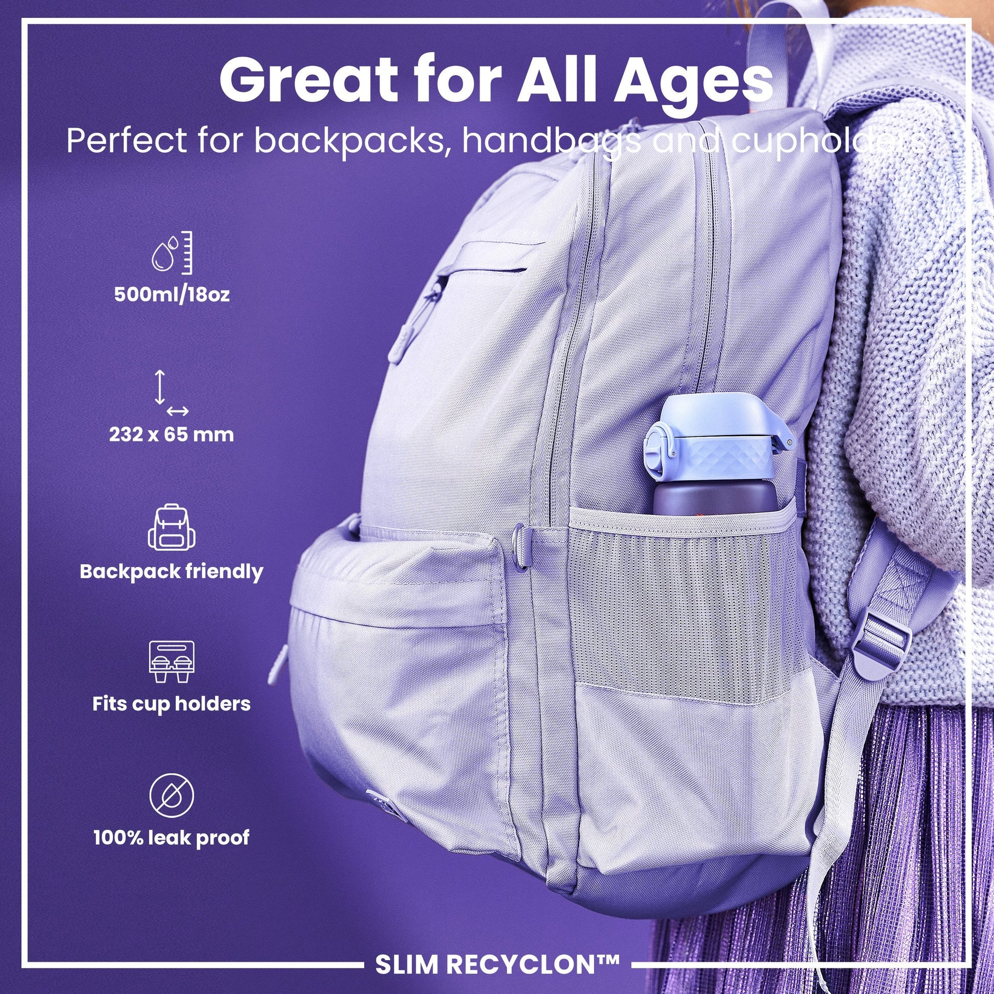 Made from Recyclon™, a transparent carbon neutral plastic partly made from plants. Reuse & refill responsibly. This purple water bottle is food safe, odour resistant, easy to wash, and keeps drinks fresh and full of flavour.