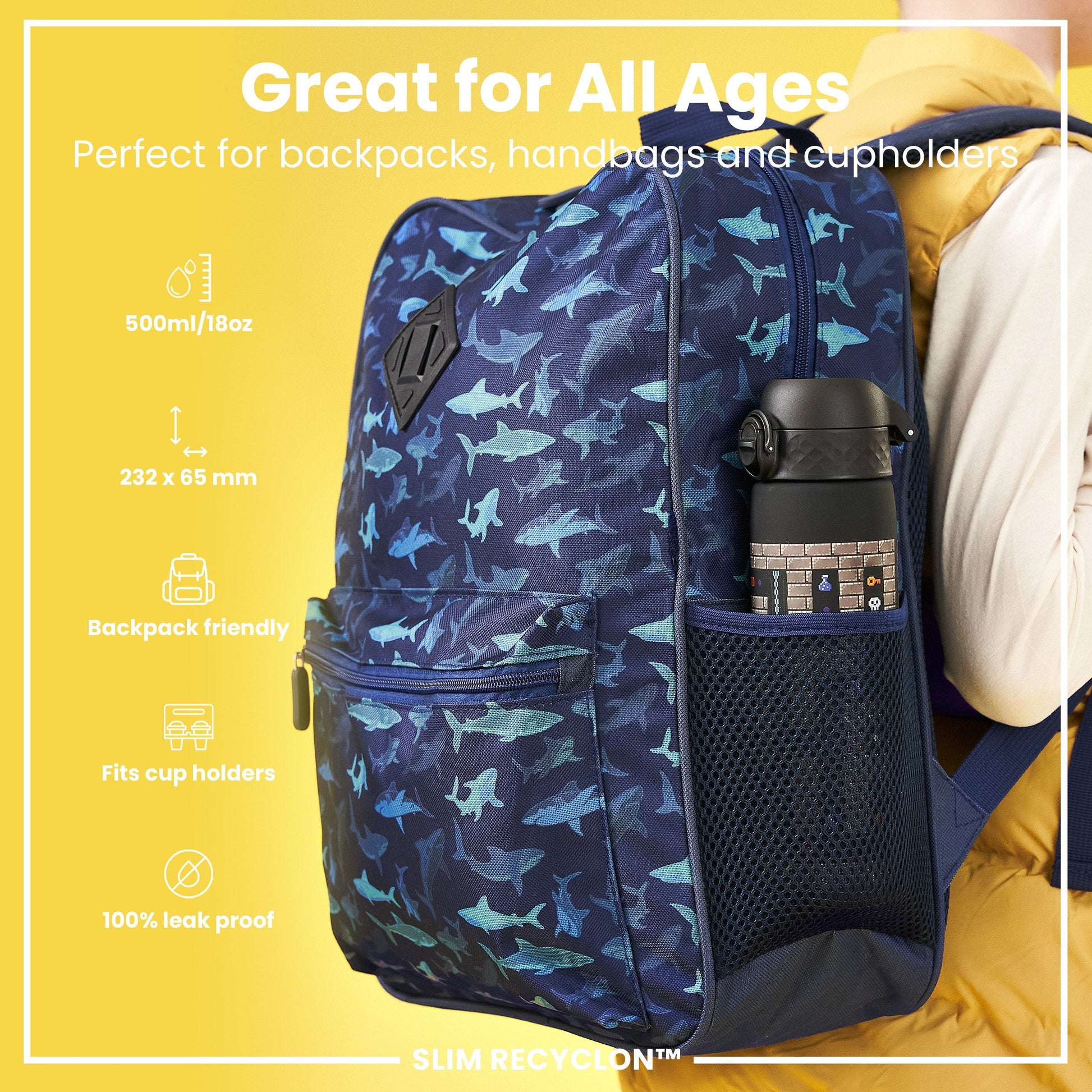 Leak Proof Slim Water Bottle, Recyclon, Gamer, 500ml (18oz)