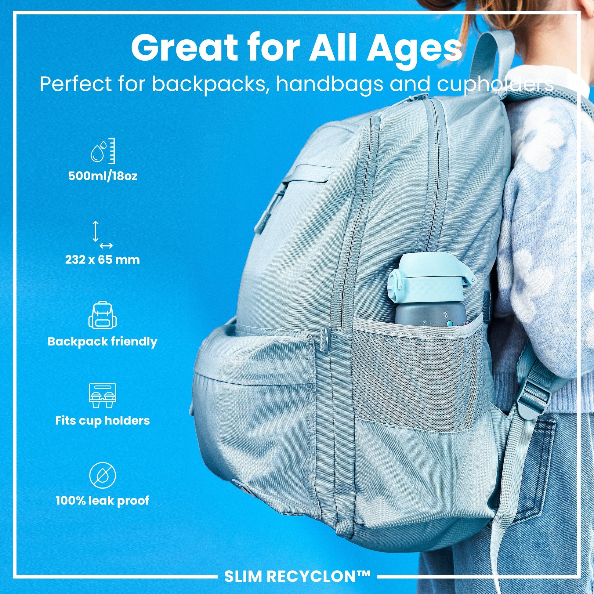Leak Proof Slim Water Bottle, Recyclon, Mermaids, 500ml (18oz)