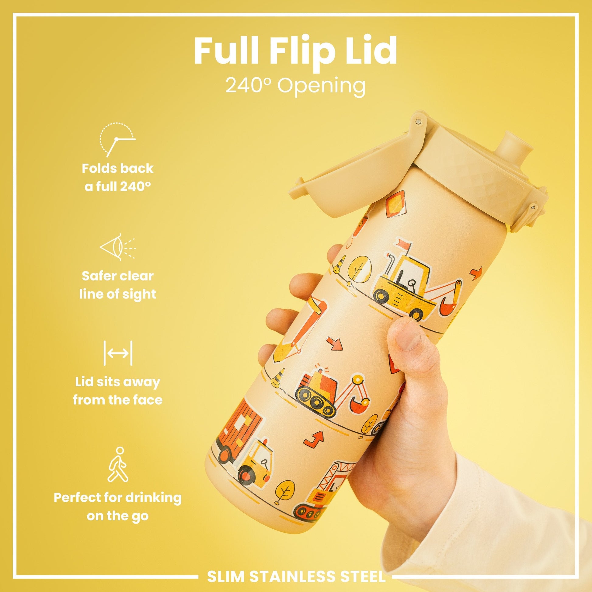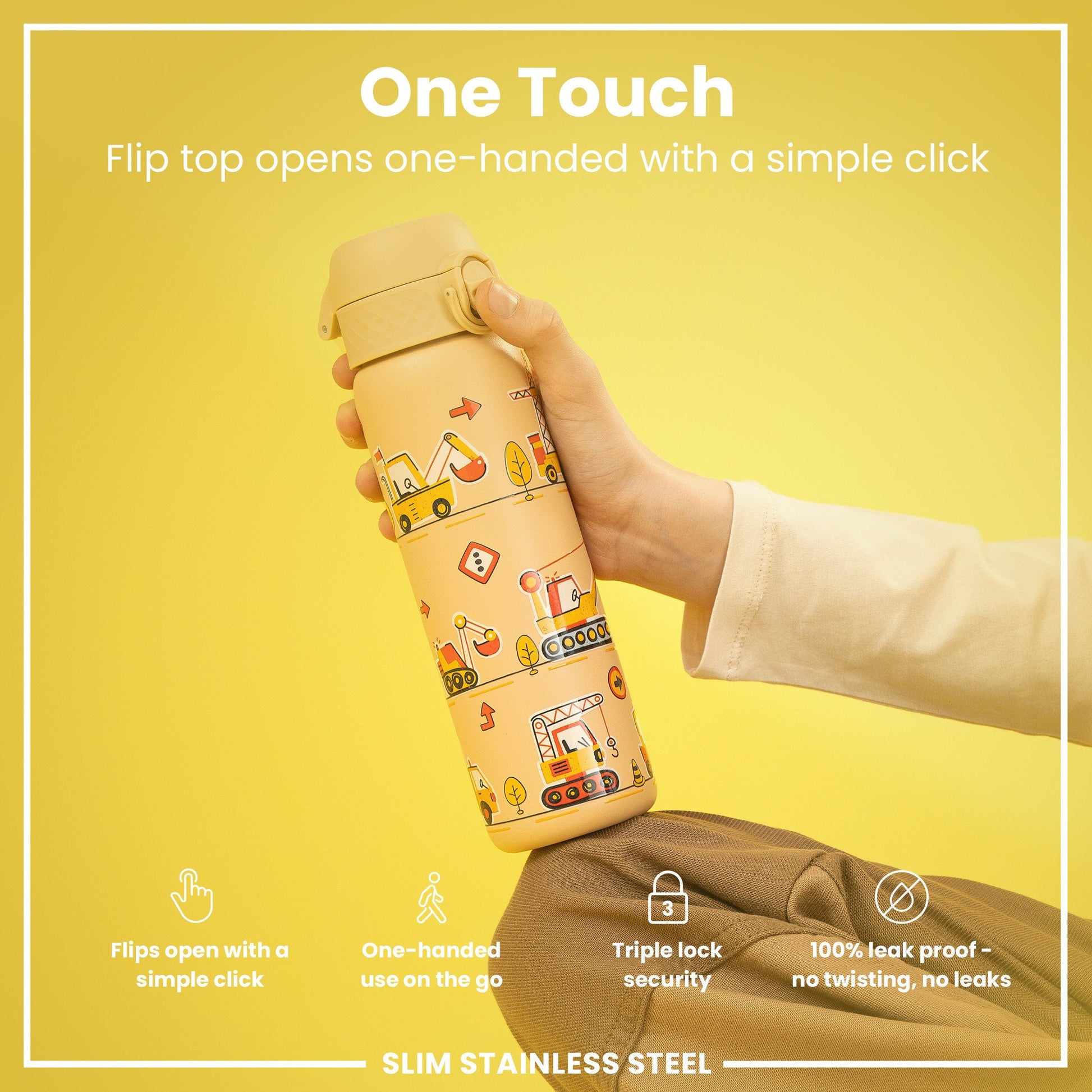 100% leak proof 600ml / 20oz stainless steel water bottles with a smooth flow for spill-free hydration and hygienic full-flip top cover for one handed use on-the-go.