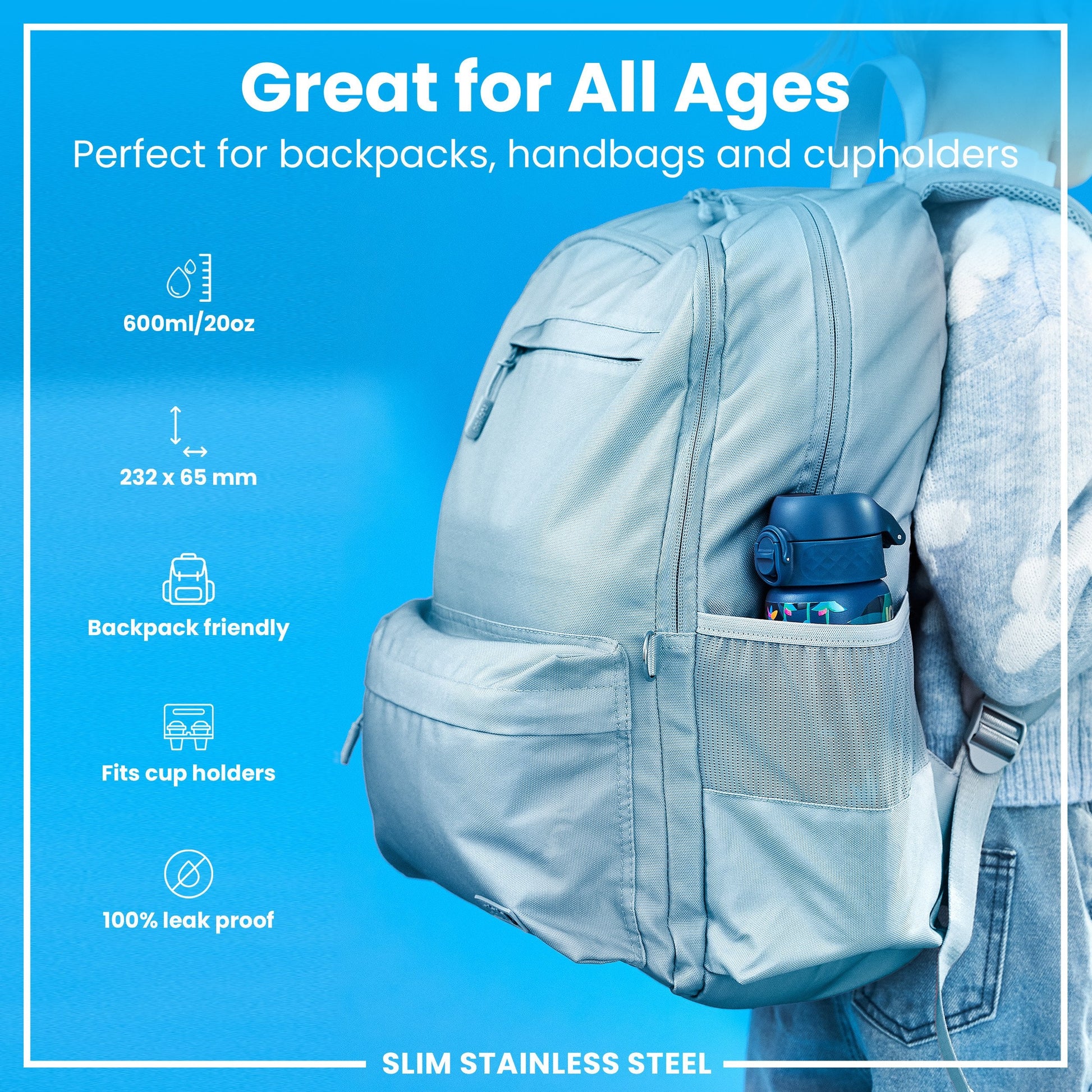 100% leak proof 600ml / 20oz stainless steel water bottles with a smooth flow for spill-free hydration and hygienic full-flip top cover for one handed use on-the-go.