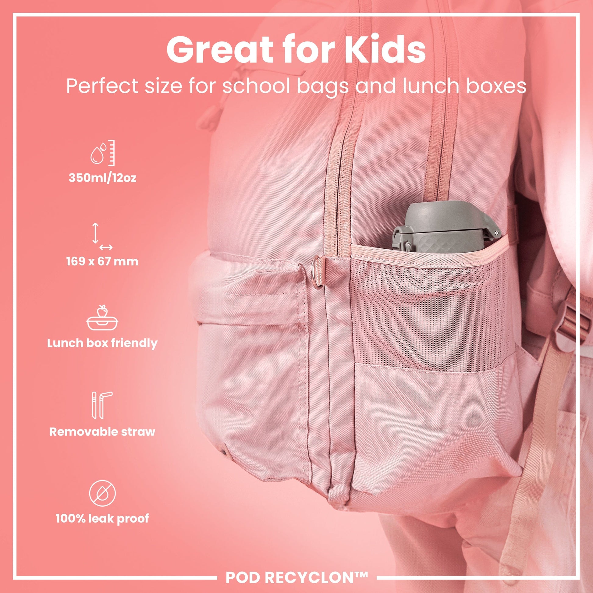 Leak Proof Small Water Bottle With Straw, Recyclon, Grey, 350ml (12oz)