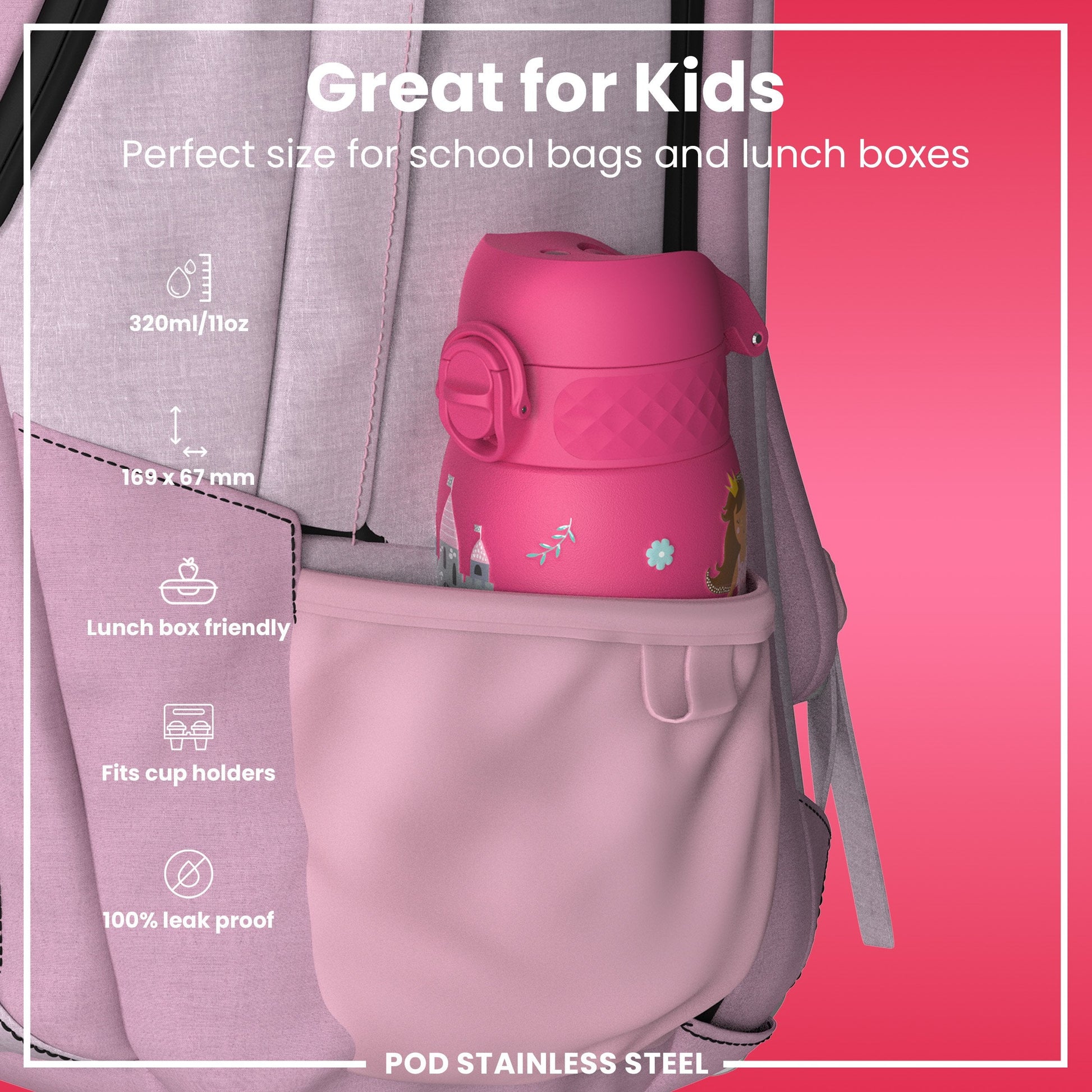 Leak Proof Thermal Steel Water Bottle, Insulated, Princess, 320ml (11oz)