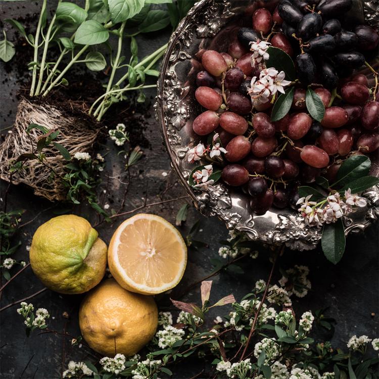Cotton Napkins - Original Food Photography and Styling featuring lemon grape design. Our serviettes are made from high quality cotton and will add the finishing touch to any table setting. All the designs are available for a limited time only ensuring exclusivity.