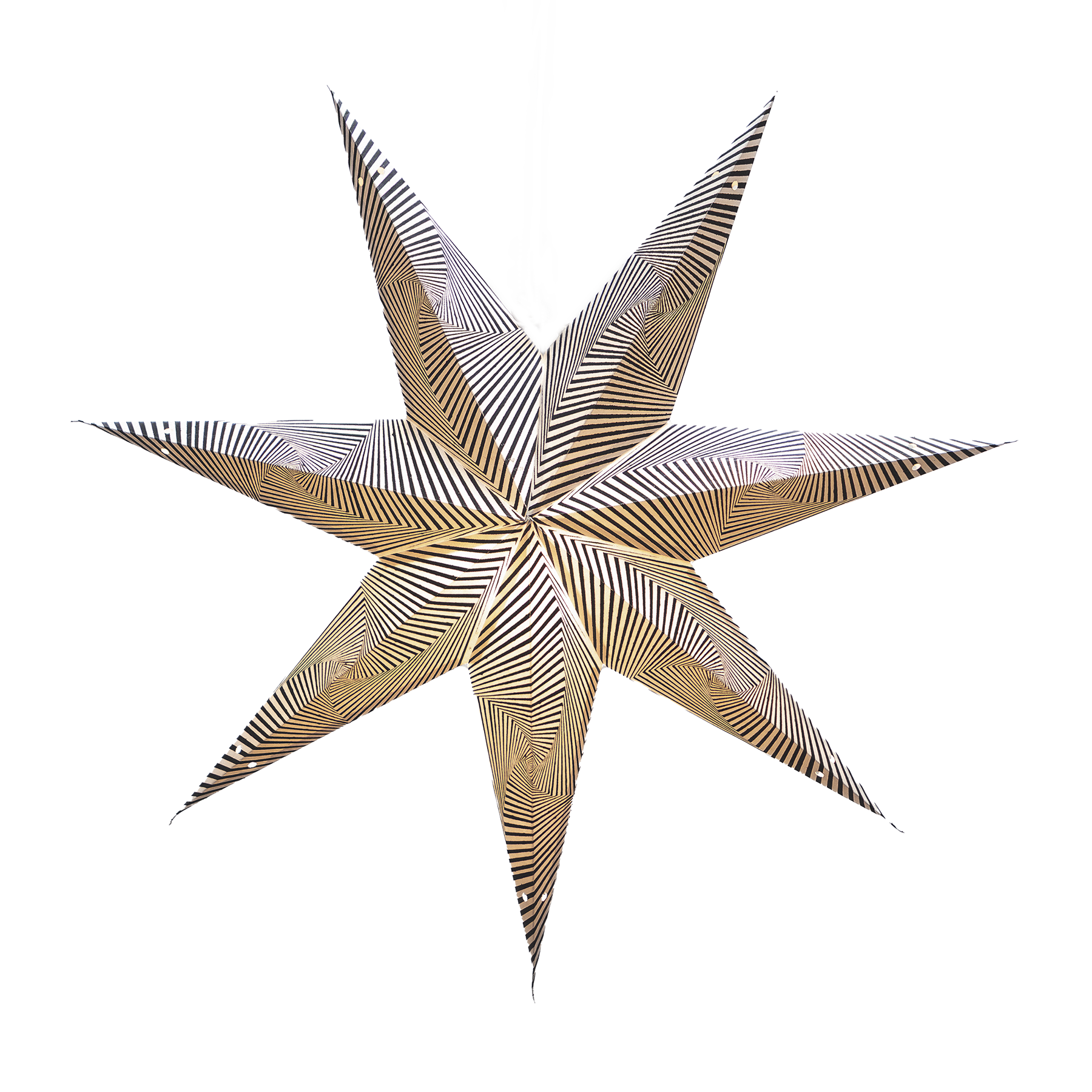 Liberty Noir is a monochrome masterpiece – a 60cm paper star lantern with a hypnotic optical illusion print that shifts and shimmers with the light. Inspired by geometric design and vintage psychedelia, this star is made to stand out.