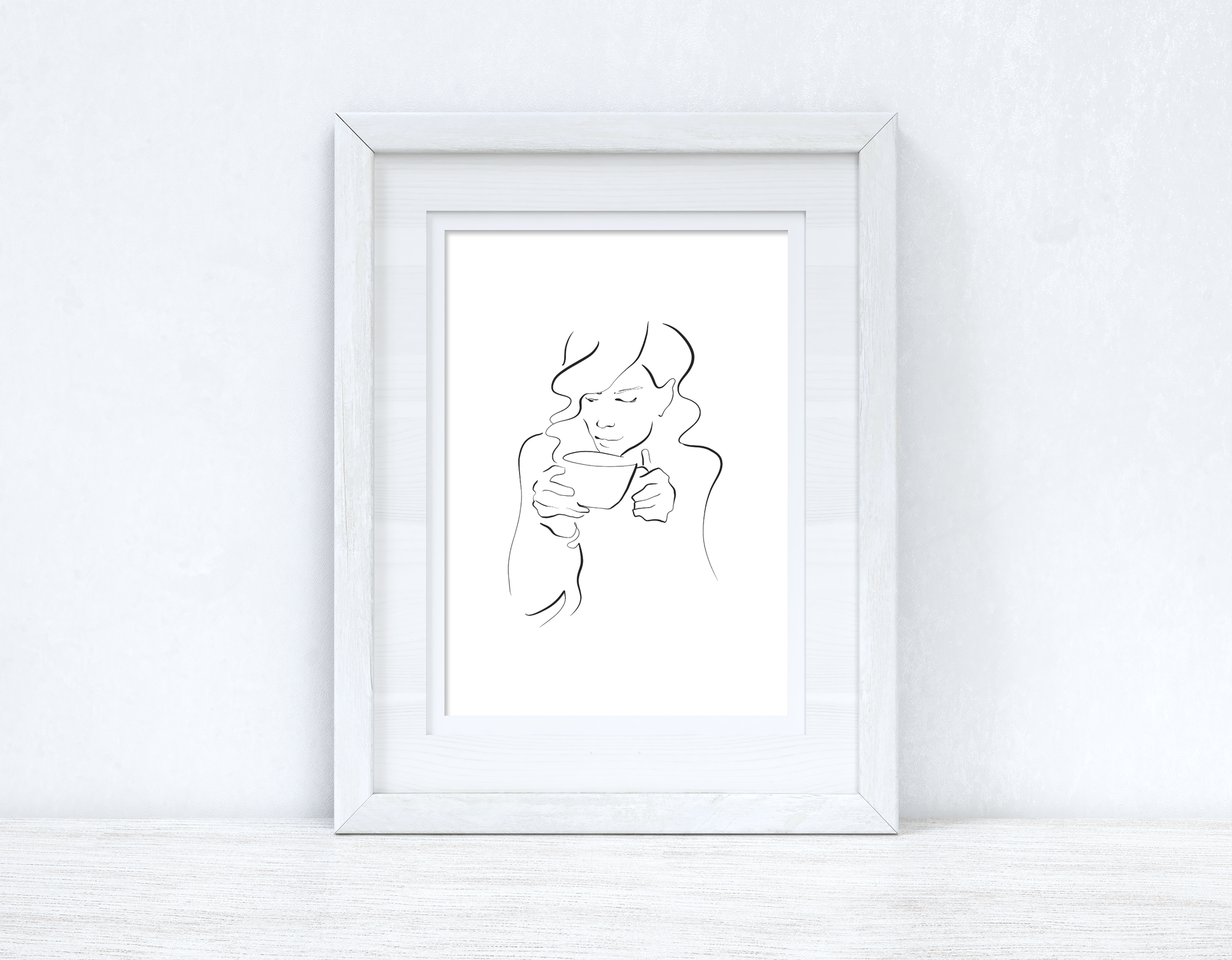 Line Work Woman Cuppa Simple Home Bedroom Dressing Room Wall Decor Print
