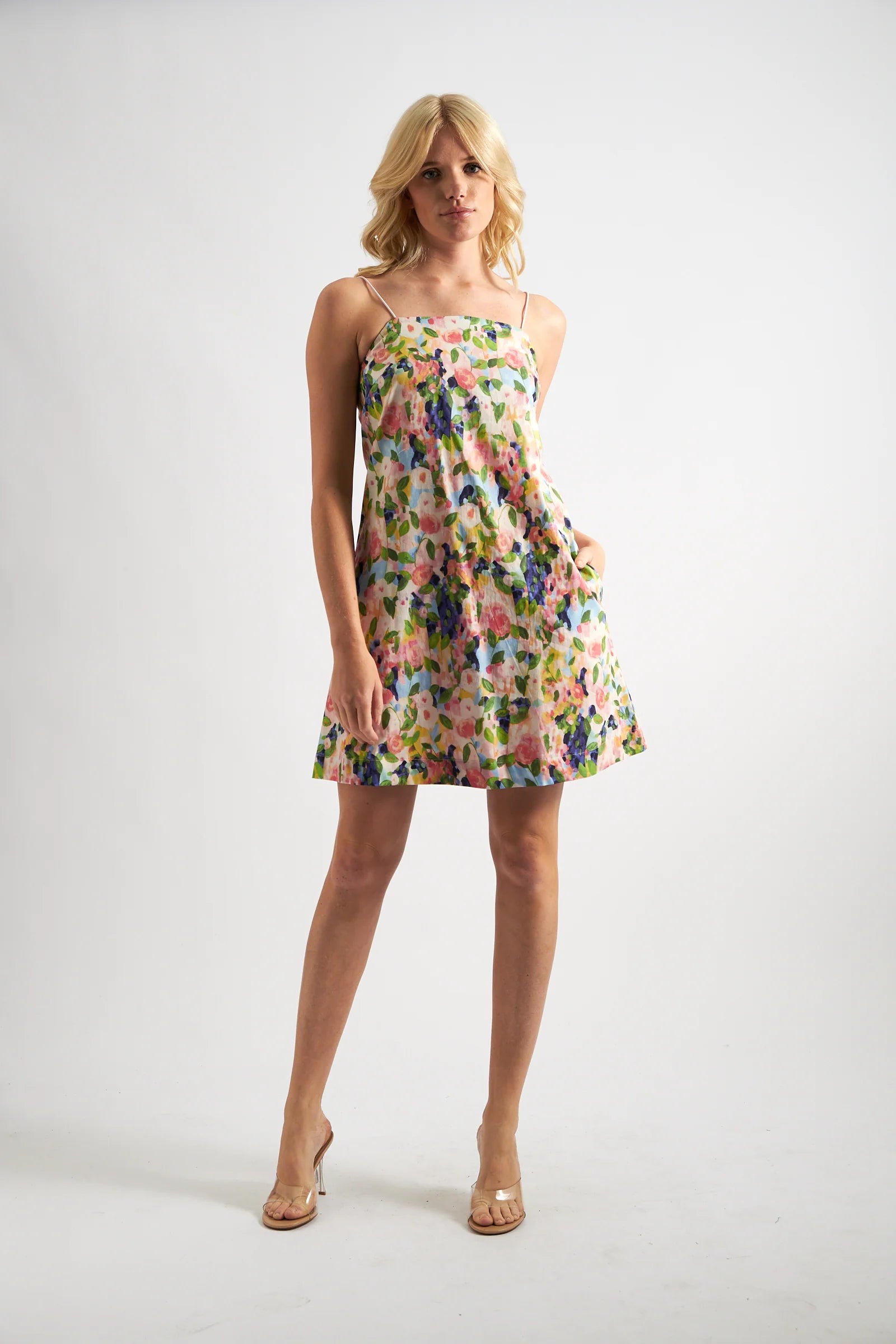 Turn heads in the Linsey Summer Dream mini dress! Crafted in a stunning cotton watercolour floral print, this A Line dress is perfect for any special event. Get ready to make a statement in this super cute and flirty dress.