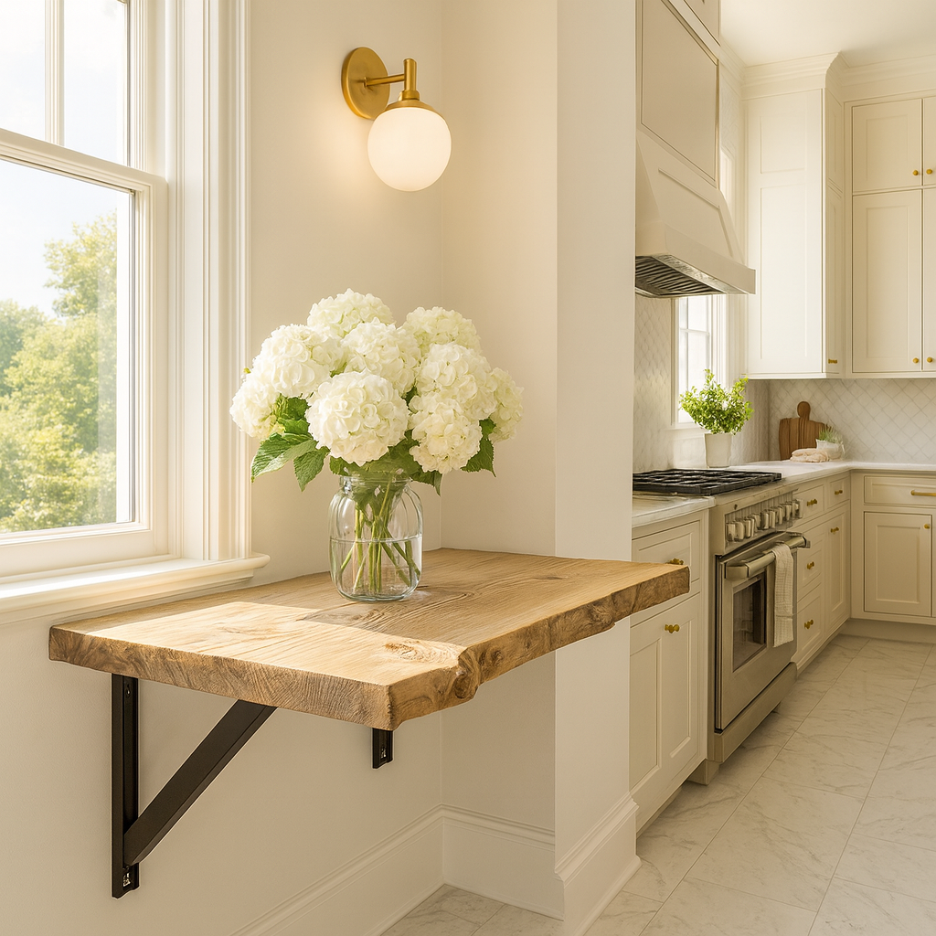 Maximize your space in style with this Live Edge Foldable Wall-Mounted Desk, handcrafted from thick, rustic solid timber. Designed for modern living, it easily folds down when not in use, making it perfect for home offices, kitchens, studios, or compact apartments.