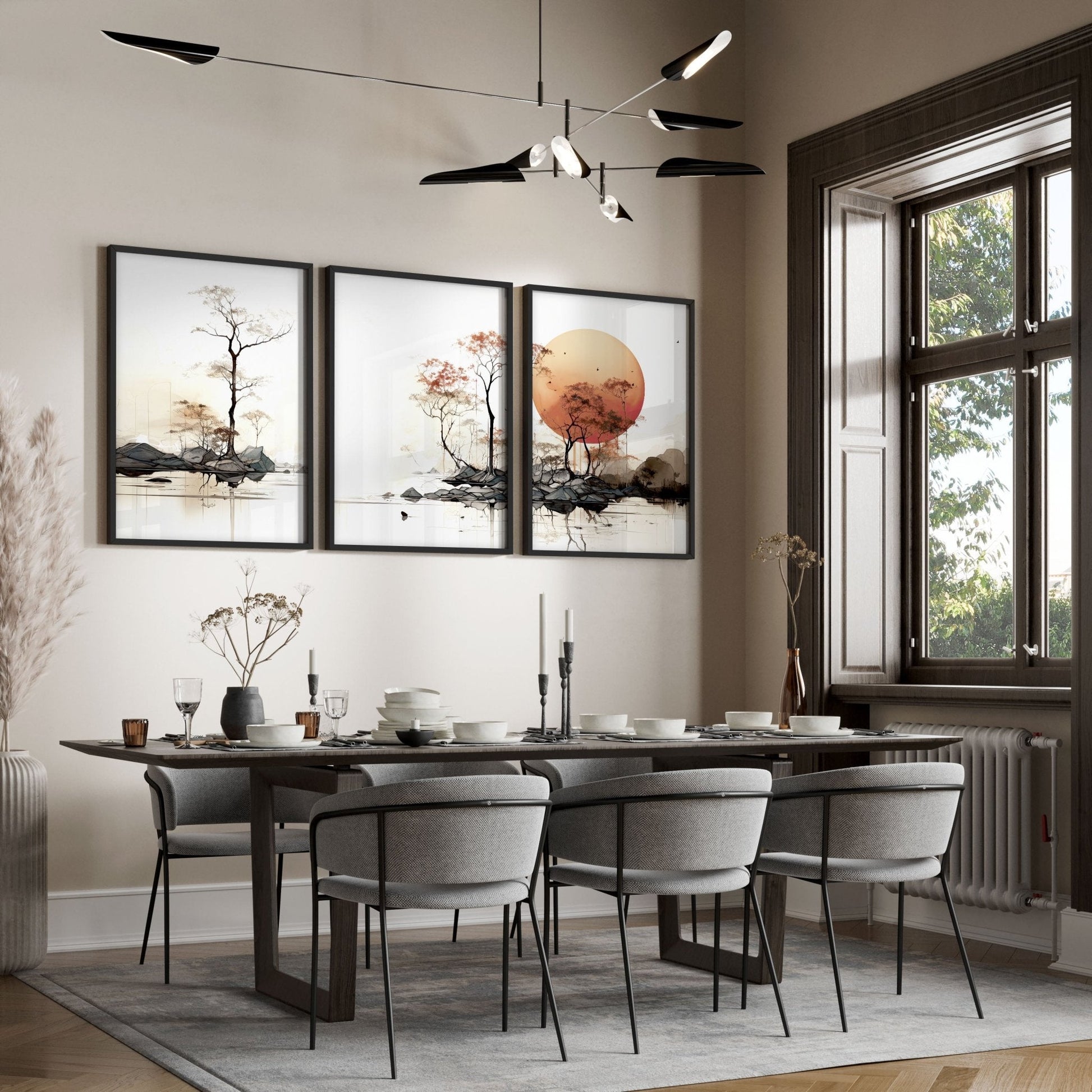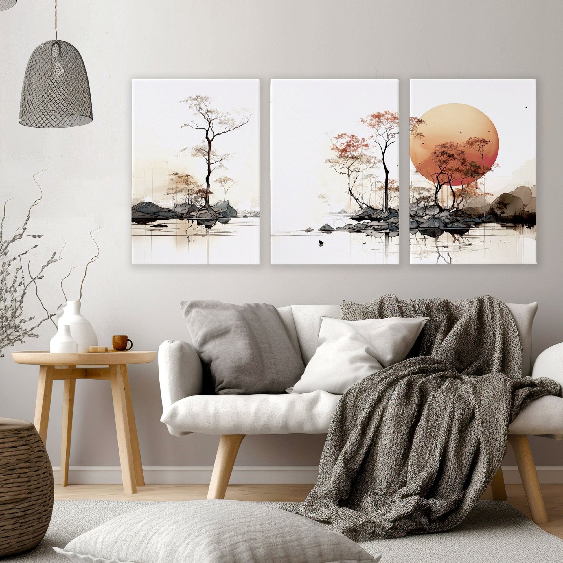 Living Room Wall Decor | Set of 3 Asian Inspired Wall art Prints