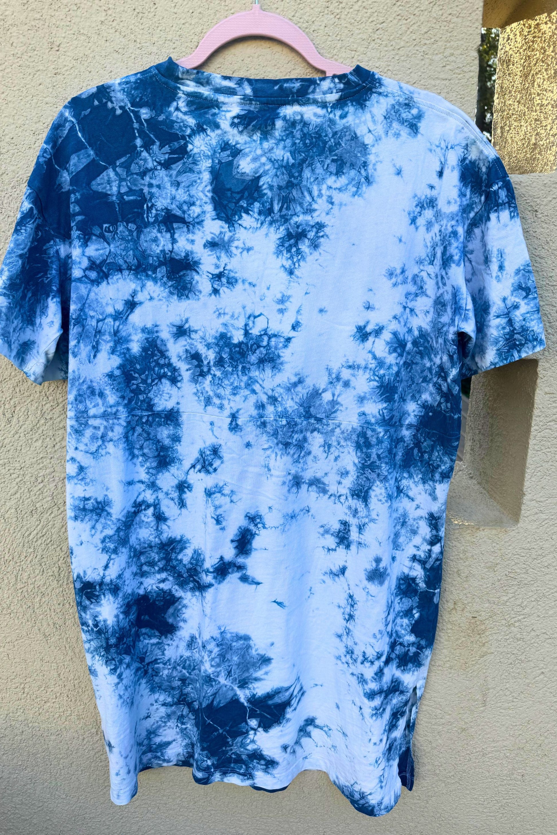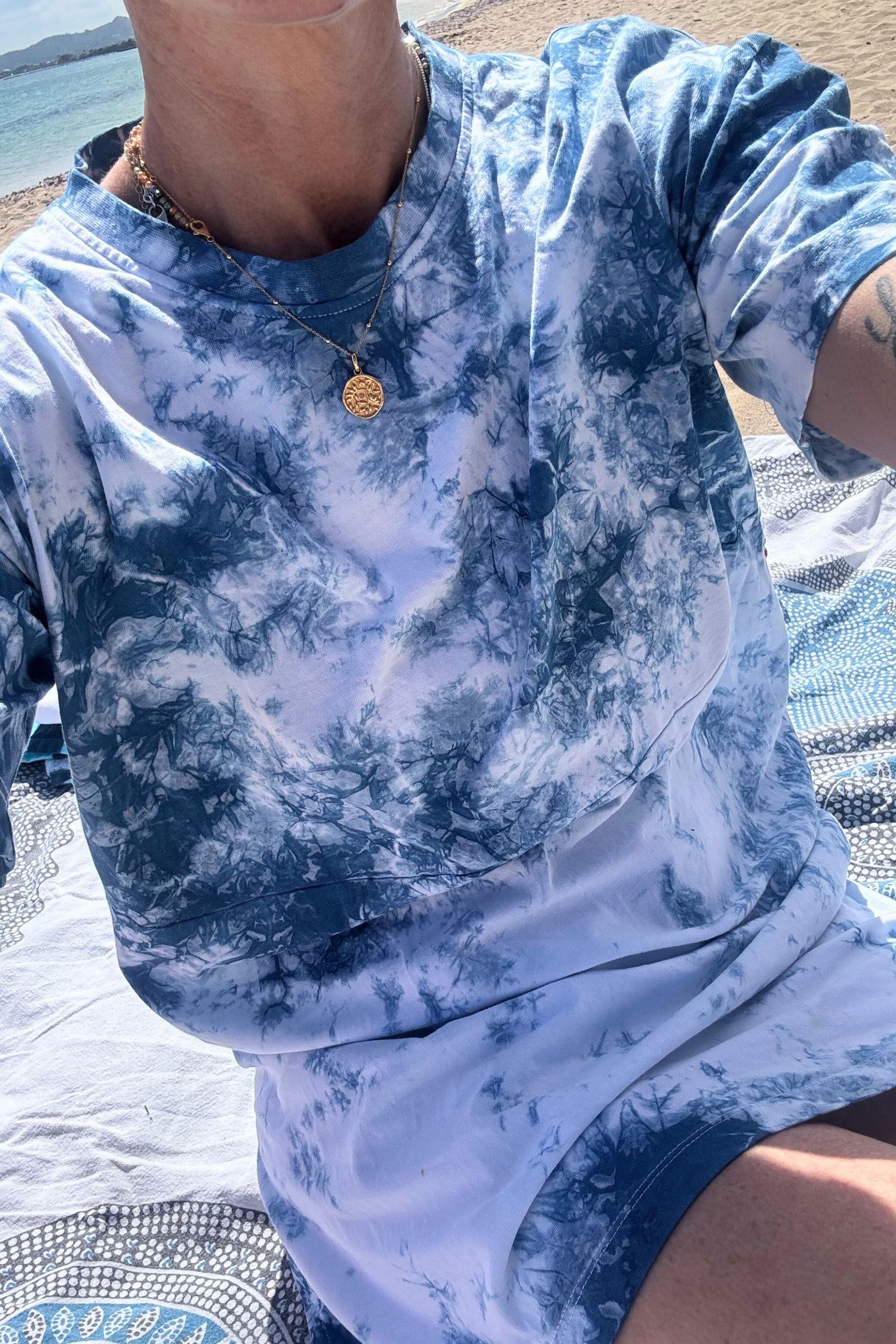 Introducing the LOLA Oversized Slit Tee Dress – the ultimate Summer and holiday essential. Inspired by sun-drenched shores and carefree beach days, this dress is crafted from 100% Organic Cotton and hand dyed using eco-friendly Indigo. We have used a loose binding technique for LOLA, so more white fabric is shown on the design. This wondrous fabric is 180gsm, so will keep you cool and comfortable under the Summer sun.
