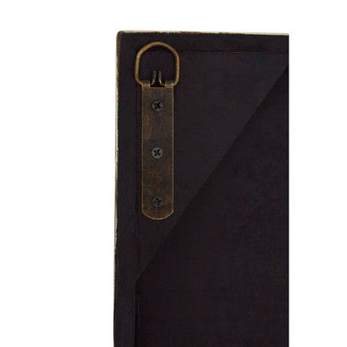 Crafted from natural wood, the square Lombok wall mirror boasts a distinctive geometric pattern that creates an stylish look. The frame features a distressed white finish, with natural wood tones from beneath enhancing the triangular patterns. The square mirrored glass panel offers a smooth contrast to the textured wood frame.