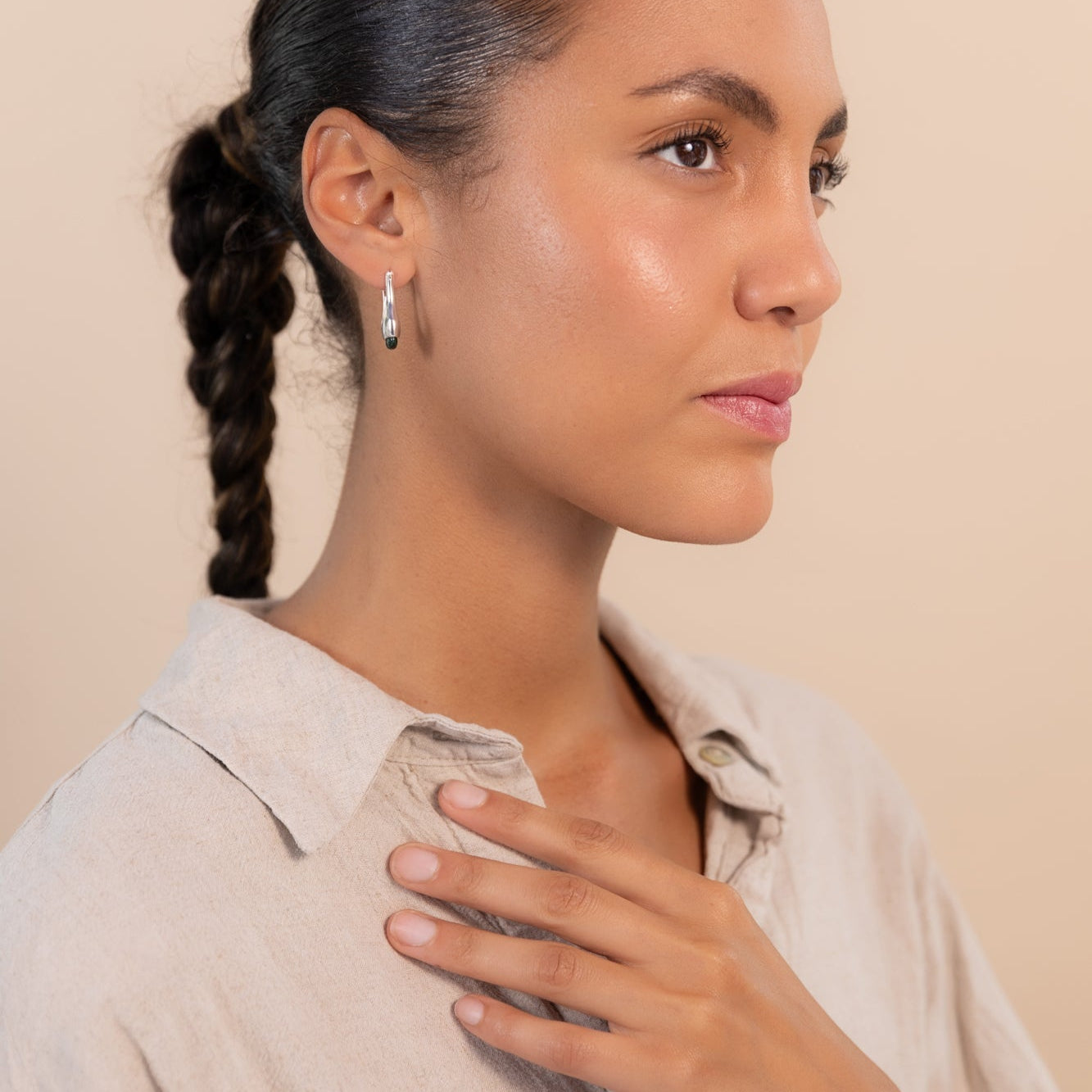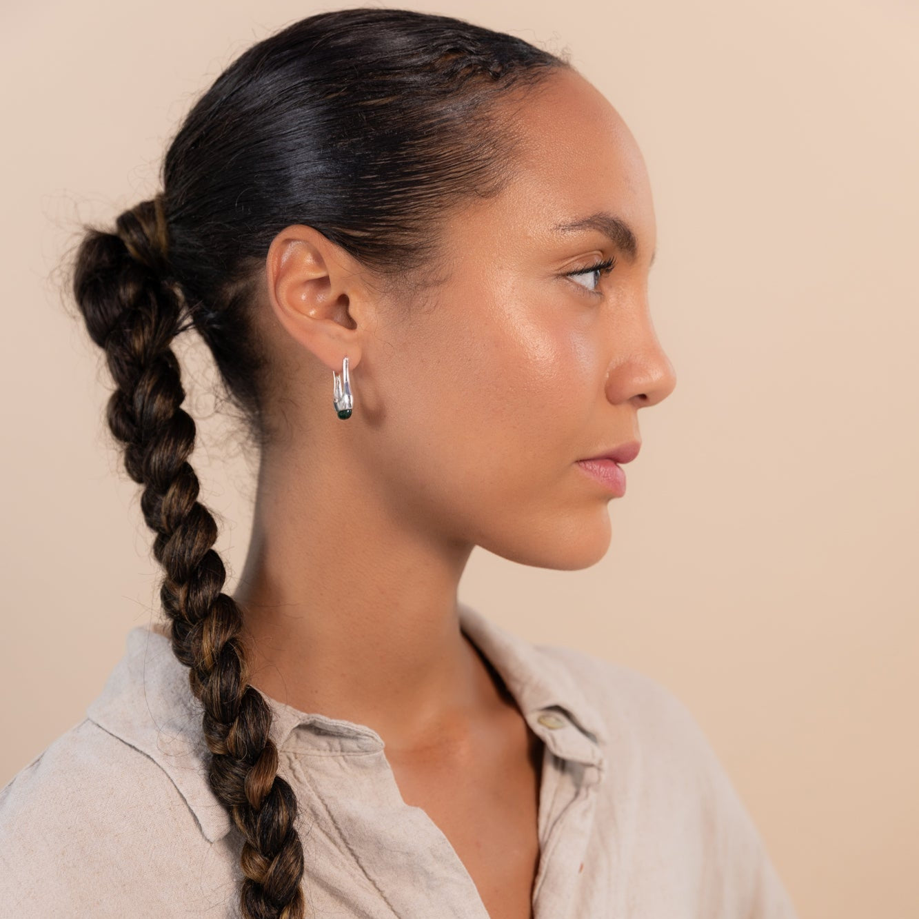 With a clean elongated drop and an inset green stone, the Eclipse Drop Earrings offer sleek lines with subtle power. Sculptural and lightweight, they bring elegant drama to any look, day or night. Made using ethically sourced materials