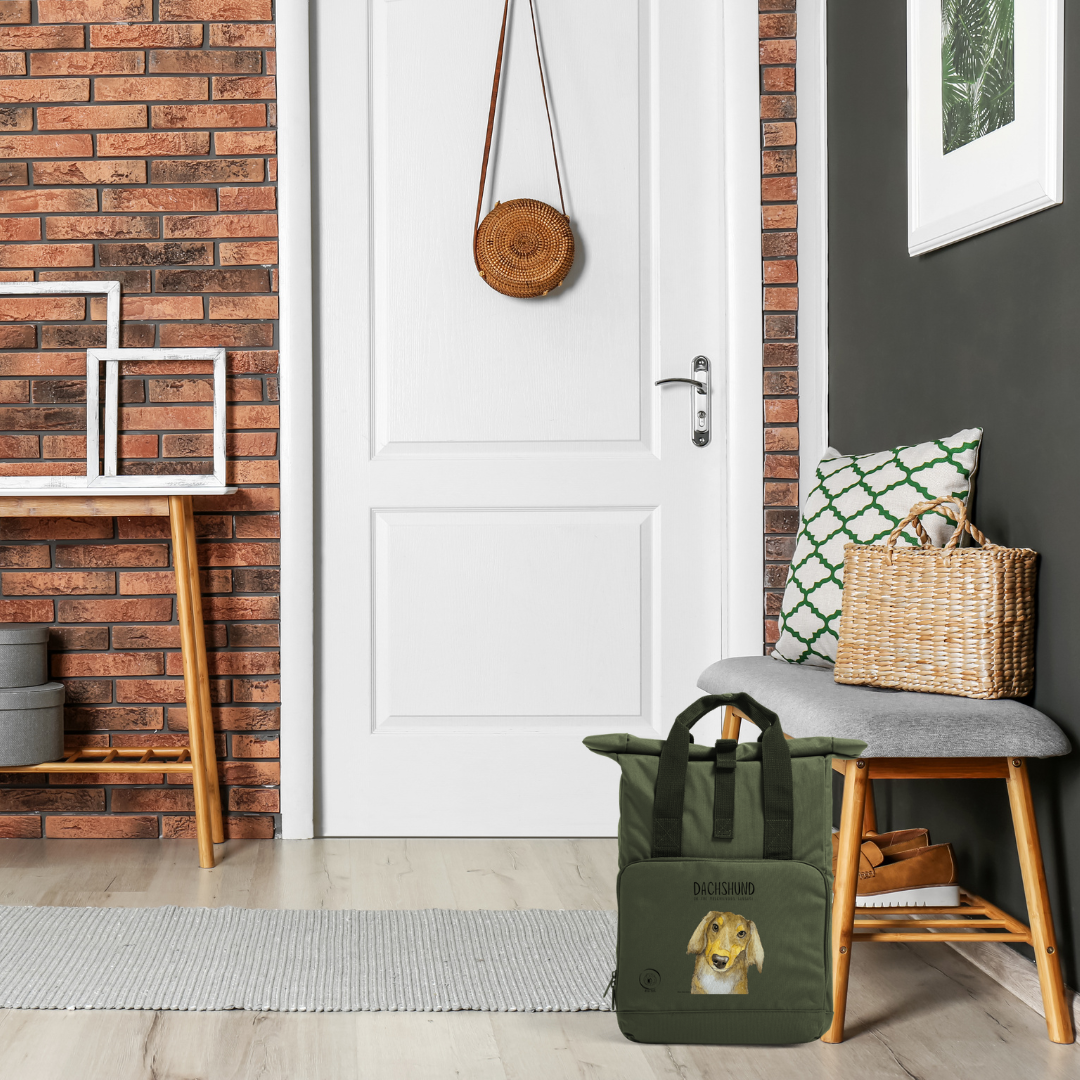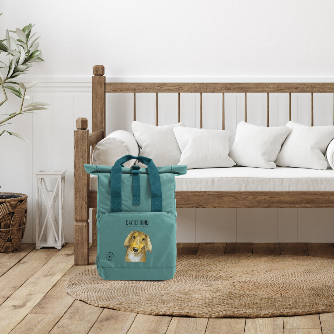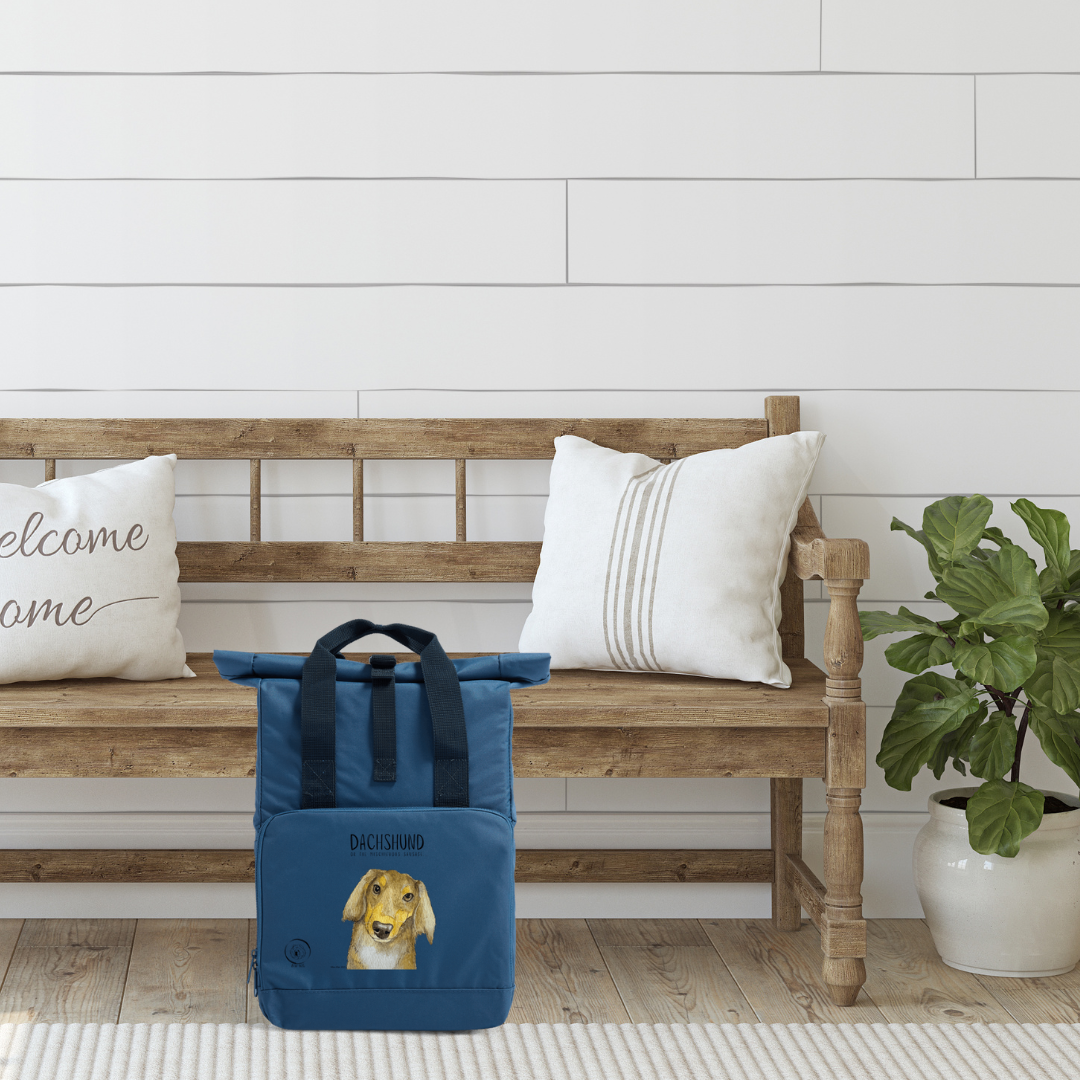 Meet the ultimate backpack for Dachshund lovers—a high-end roll-top design inspired by the mighty wiener dog. Just like your Dachshund at home, this bag is: