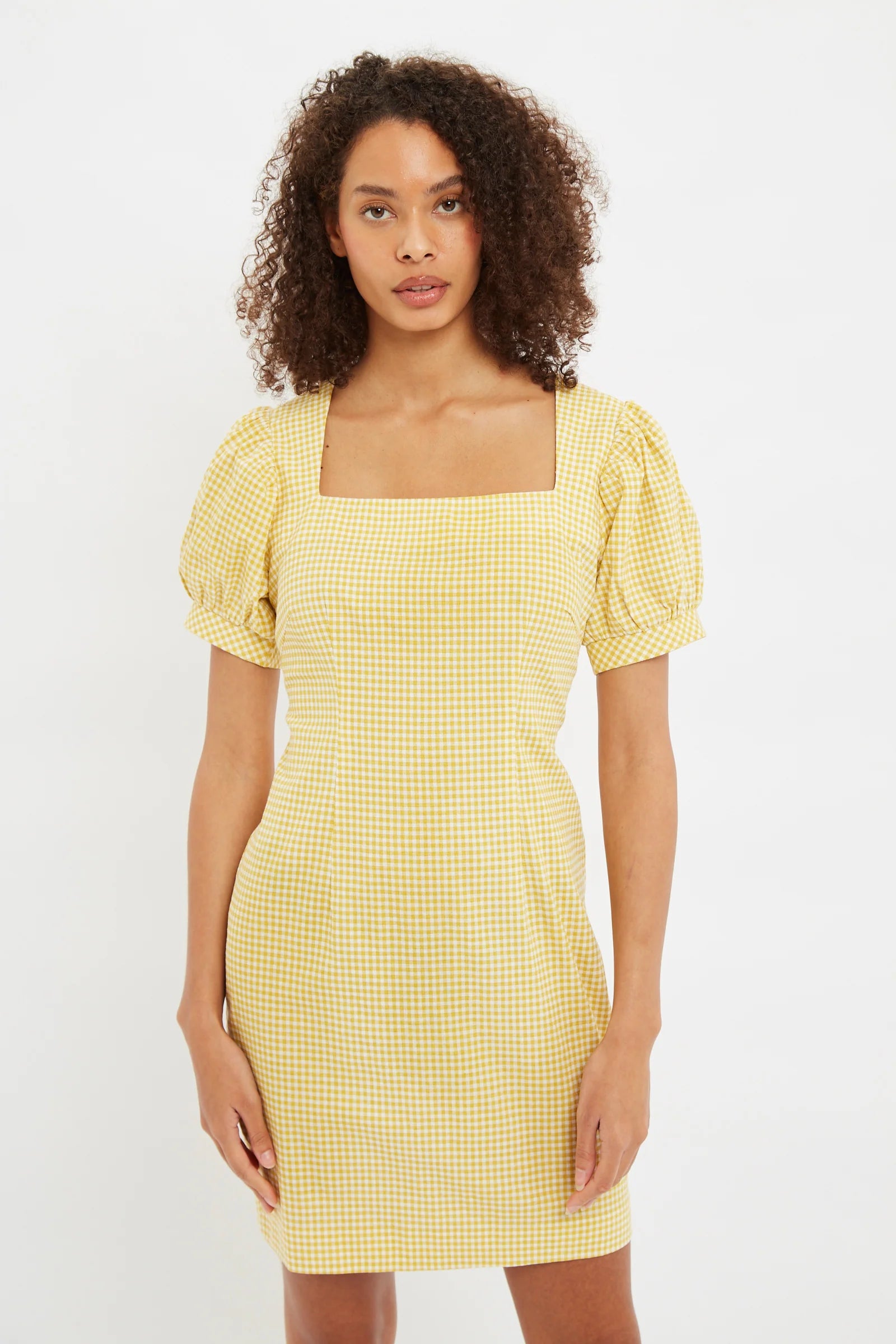 Louche Anouk Summer Gingham Body Con Mini Dress In Yellow