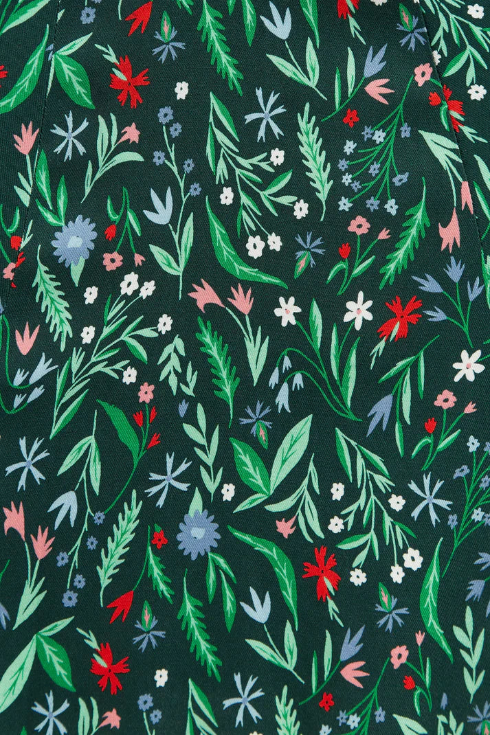 We particularly love this easy to team this flattering hip skimming midi skirt which compliments most tops in your wardrobe. It's perfect for making a new season statement. Crafted in one of our unique prints features naïve folk inspired florals on a very dark green ground, printed on a premium viscose twill. Features off centre button placket detail and slit.