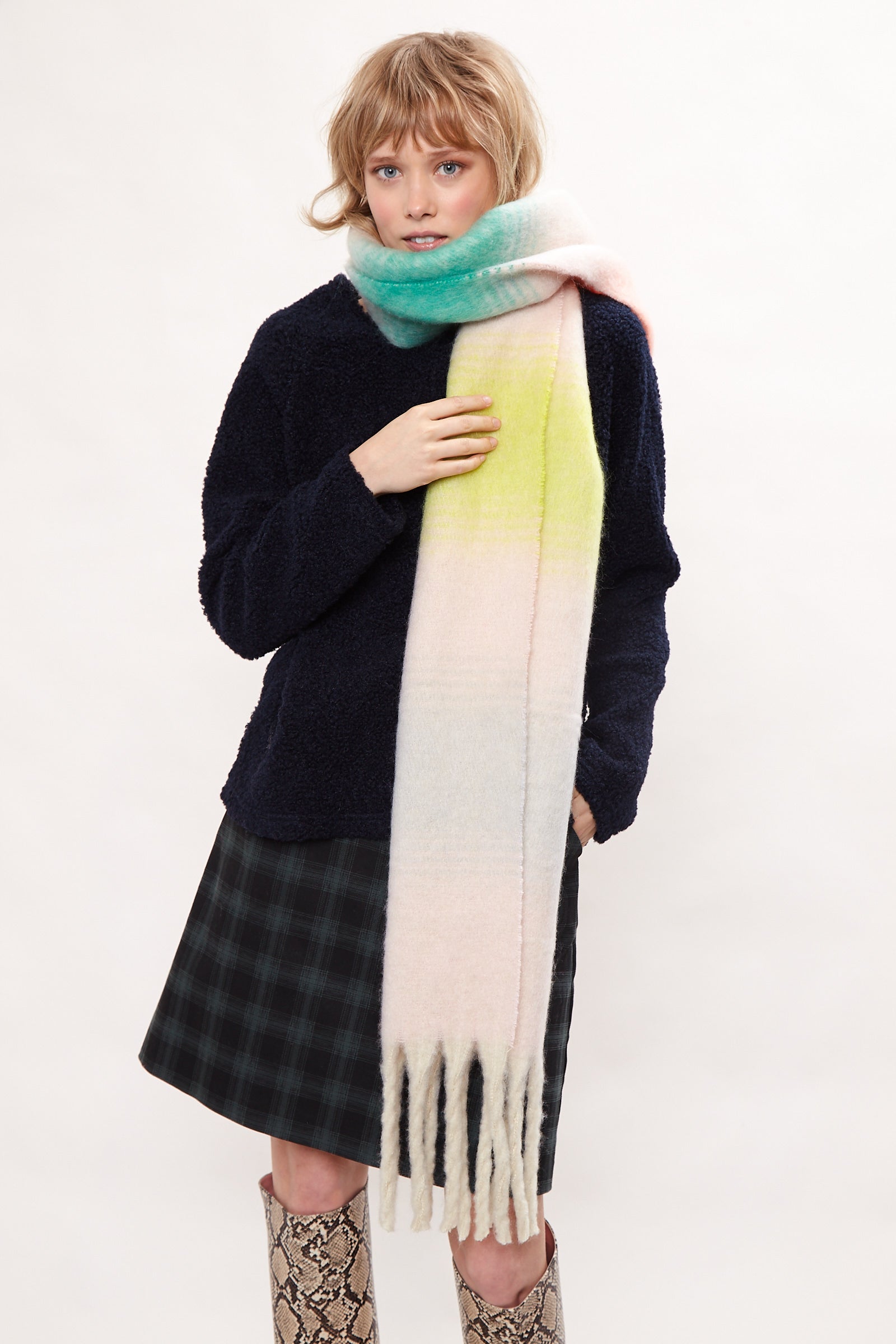 Stay warm and make a subtle fashion statement with the Louche Ciara Cosy Fluffy Striped Tassel Scarf. Made of super soft fabric , this heavy-weight scarf provides superior warmth and comfort. Its soft multi-coloured striped design, paired with a playful tassel, adds a subtle pop of colour to your look.