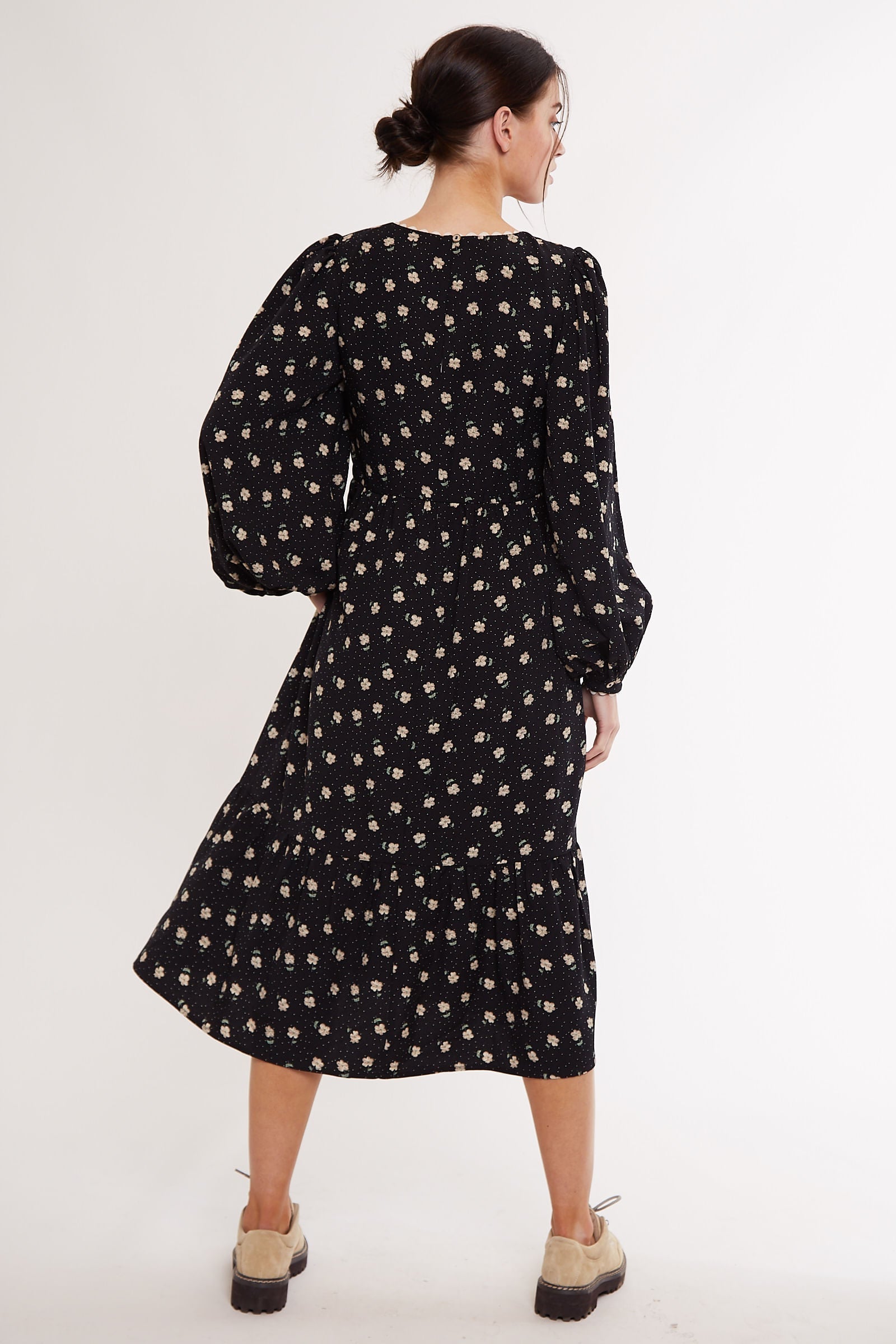 Louche Lilianne Anemone Print Mini Tiered Long Sleeve Dress