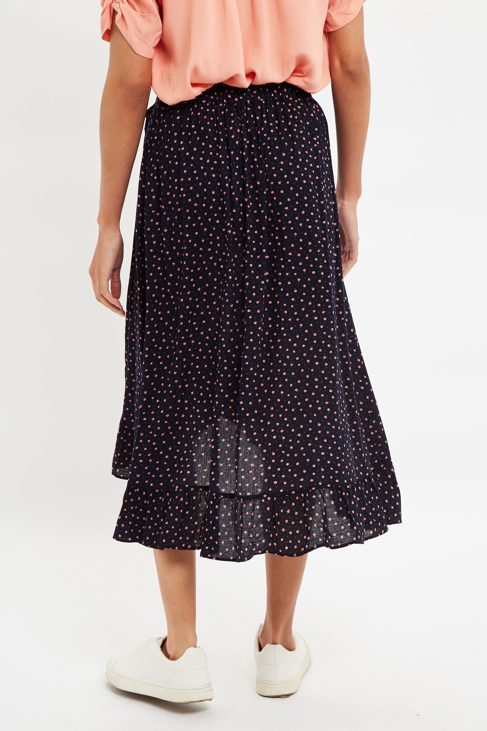 Louche Mara Teeny Flower Bud Print Ruffle Hem Wrap Midi Skirt