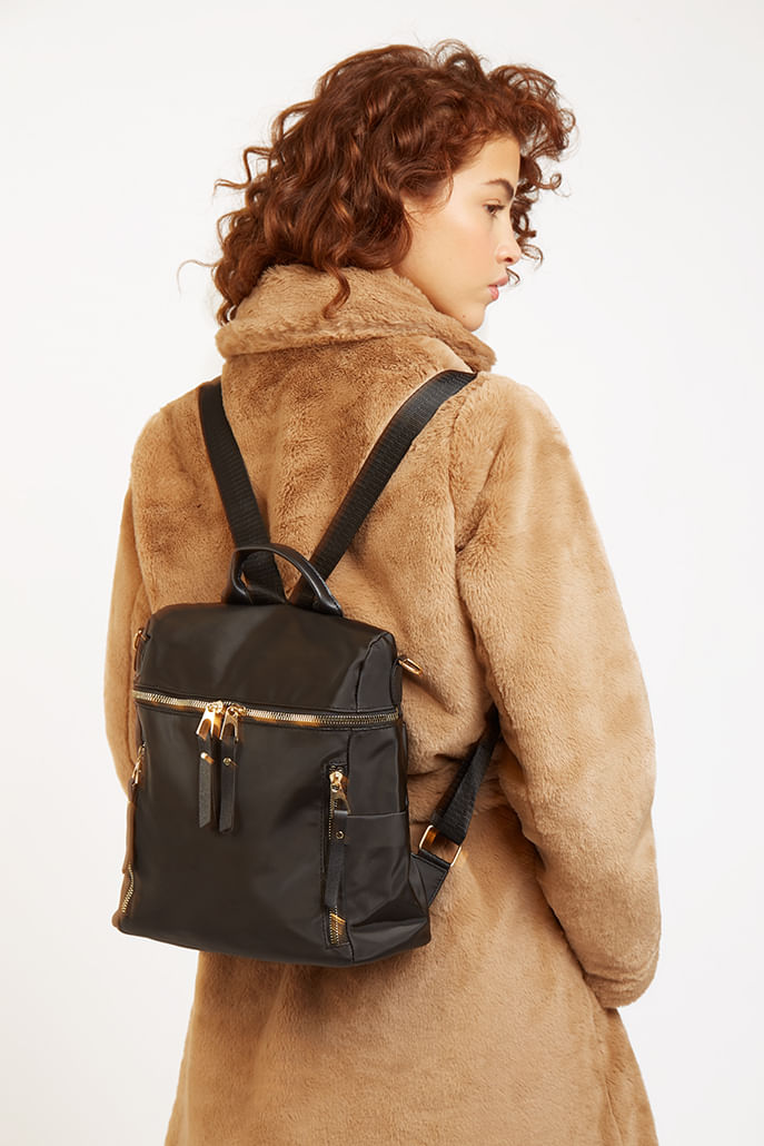 Versatility at its finest, introducing the Voss back pack, or is it? Can also be worn as a cross body or as a shoulder bag The slouchy design paired with shiny gold hardware and zip details Is a pleasing mix of fun and formal making it perfect for any occasion.