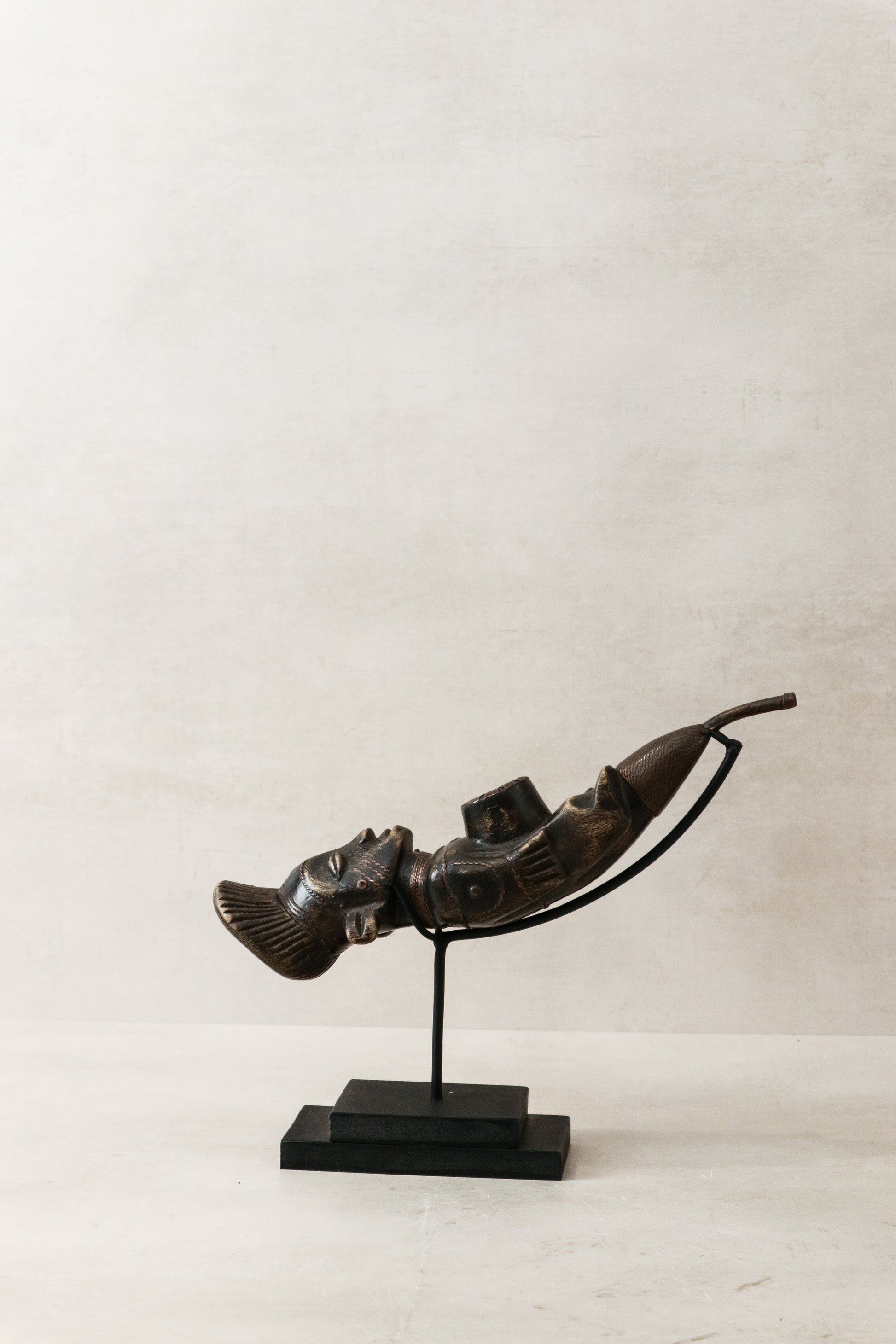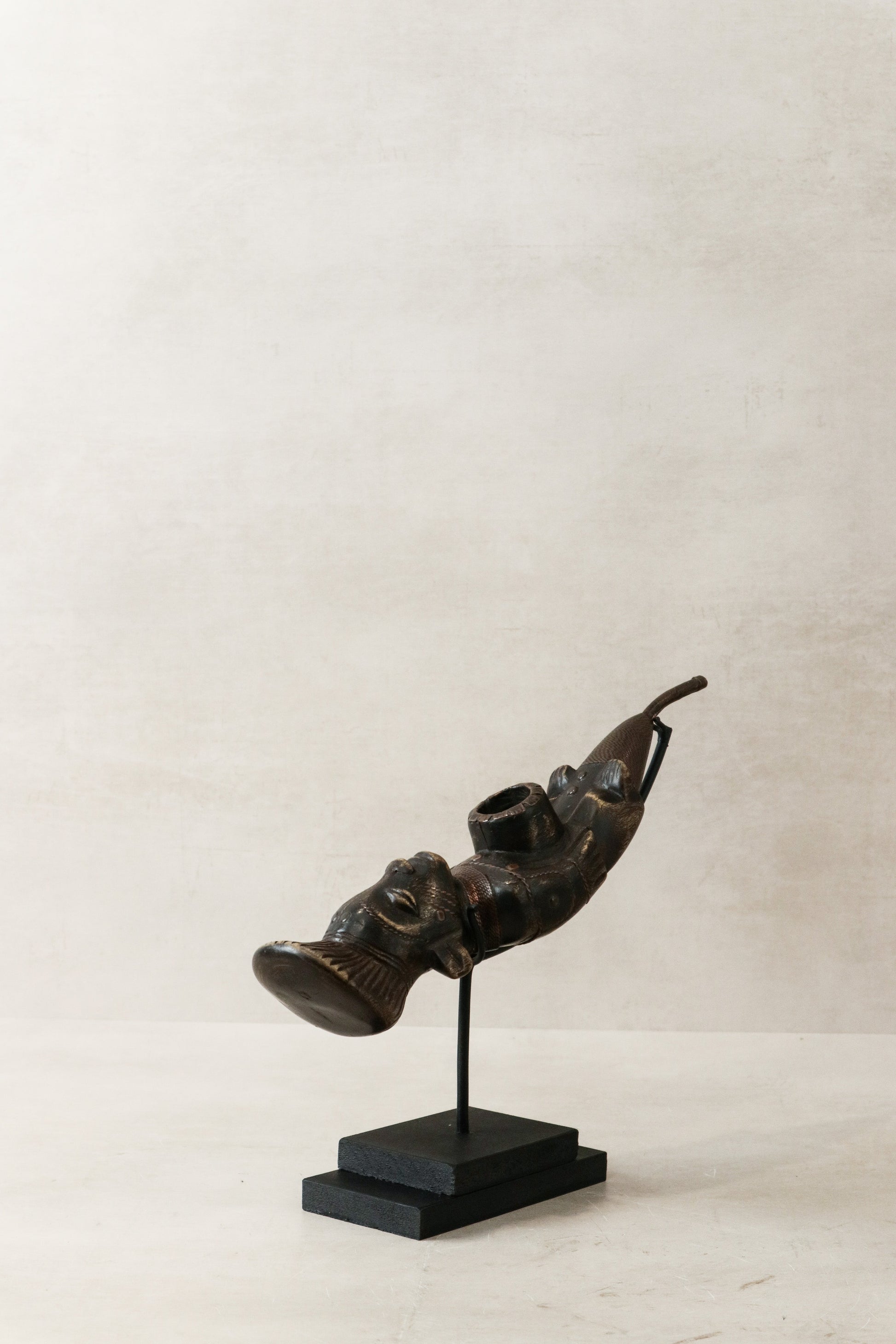 The elegant curvature and smooth finish of the pipe reflect the mastery of the artisans who painstakingly shaped and polished it by hand. Its compact size makes it perfect for display appreciating the beauty of this historical artifact.