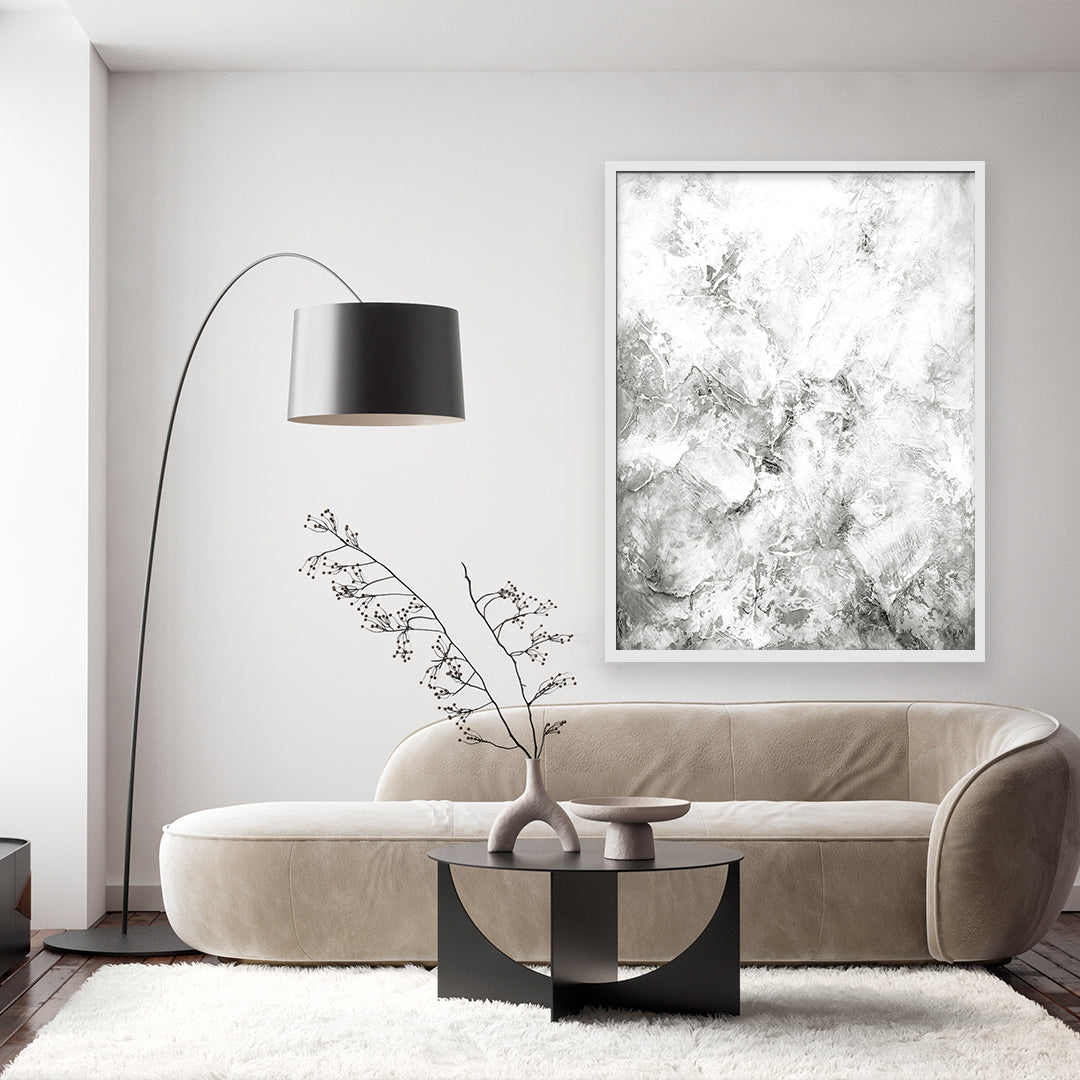 Luna, by Paige Marie, will be a stylish addition to your decor. With its white and grey colour scheme, this organic abstract piece will bring a unique look to any room.