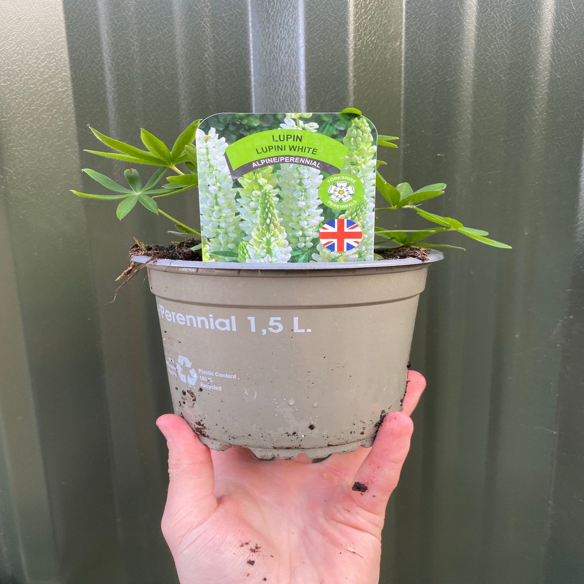 Lupin ‘Gallery White’ produces elegant, upright spires of creamy-white flowers that rise above neat mounds of green foliage in early summer. Compact and free-flowering, it’s perfect for adding structure and brightness to sunny borders and mixed planting schemes.